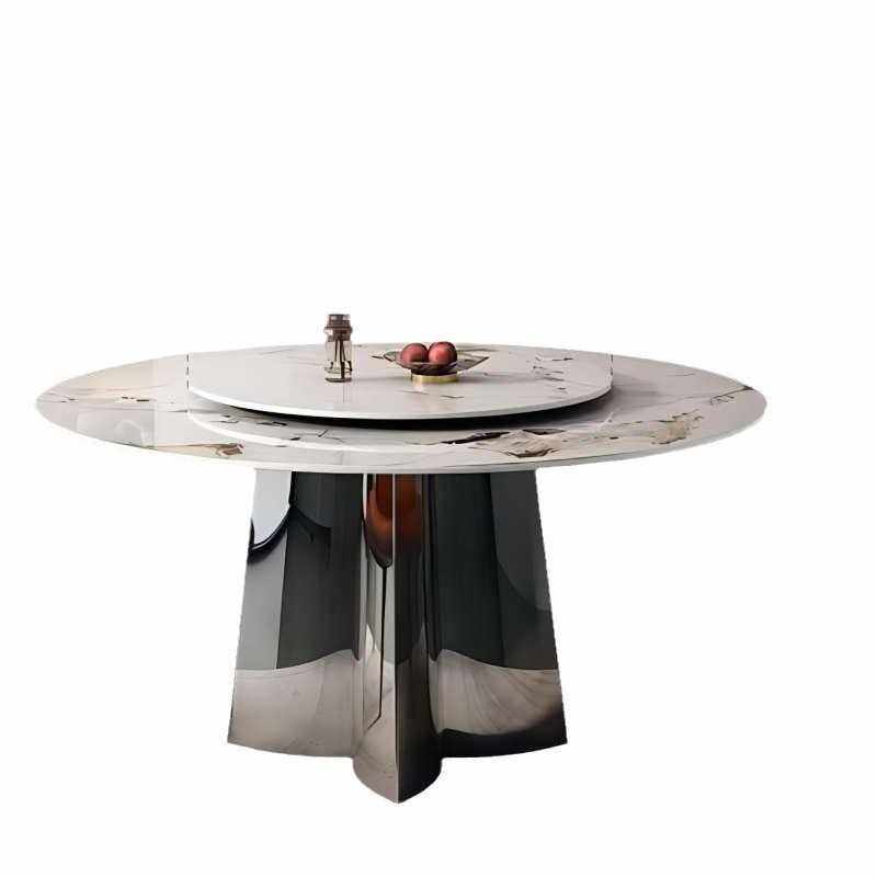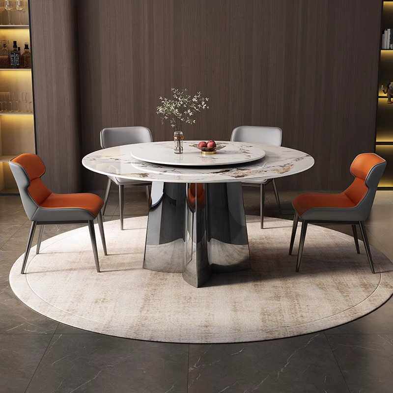 意式轻奢圆桌餐桌椅家用现代简约超晶石小户型岩板微晶石饭桌子