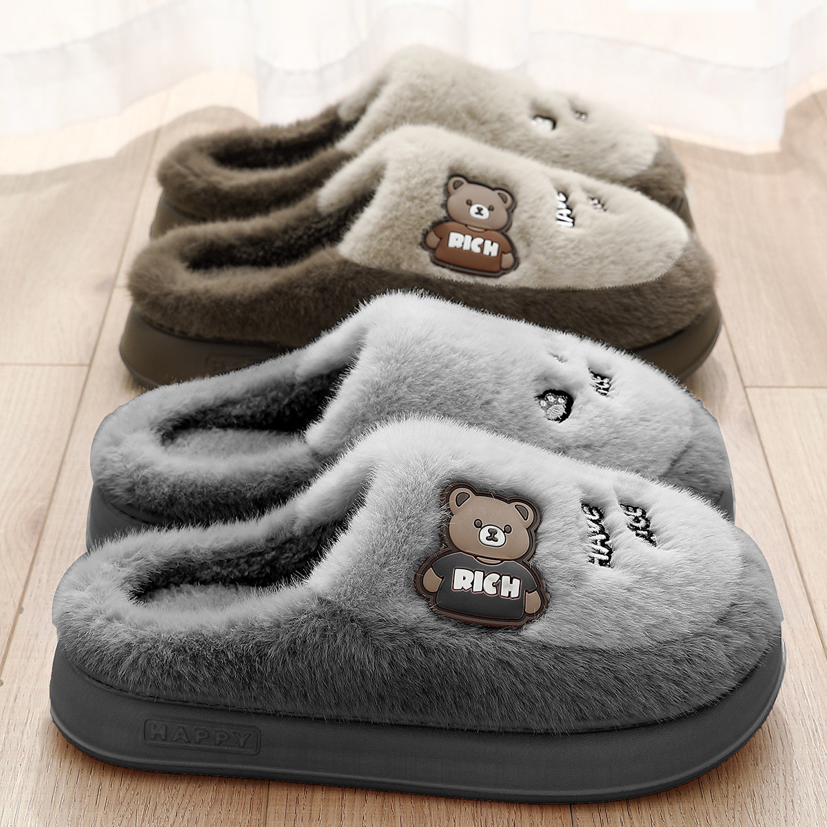 冬季厚底棉拖鞋男士2025新款外穿室内家居防滑毛毛加绒情侣棉拖男