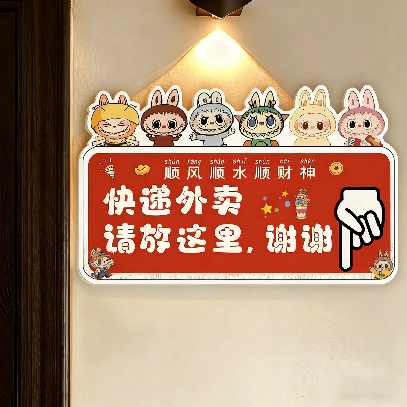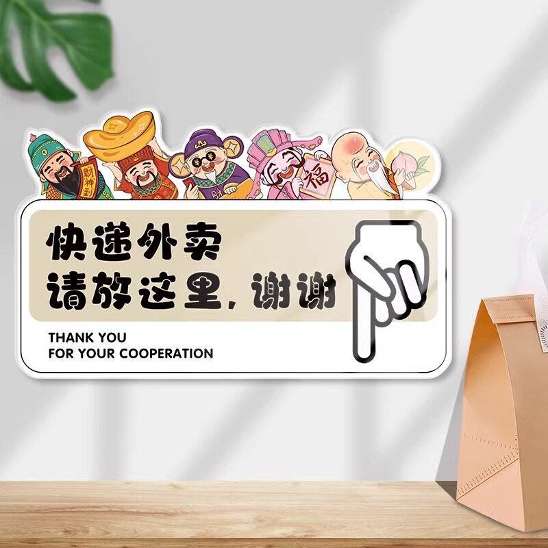 卡通创意家用亚克力快递放置区提示牌快递外卖放门口指示牌定制