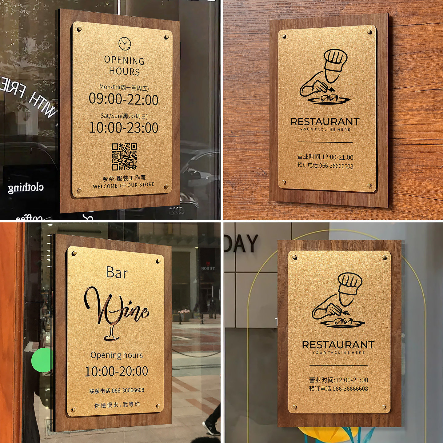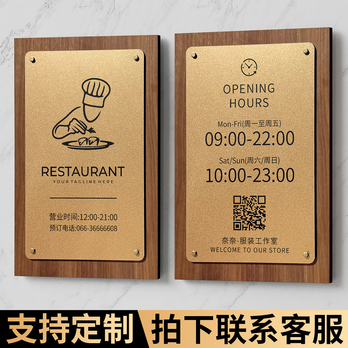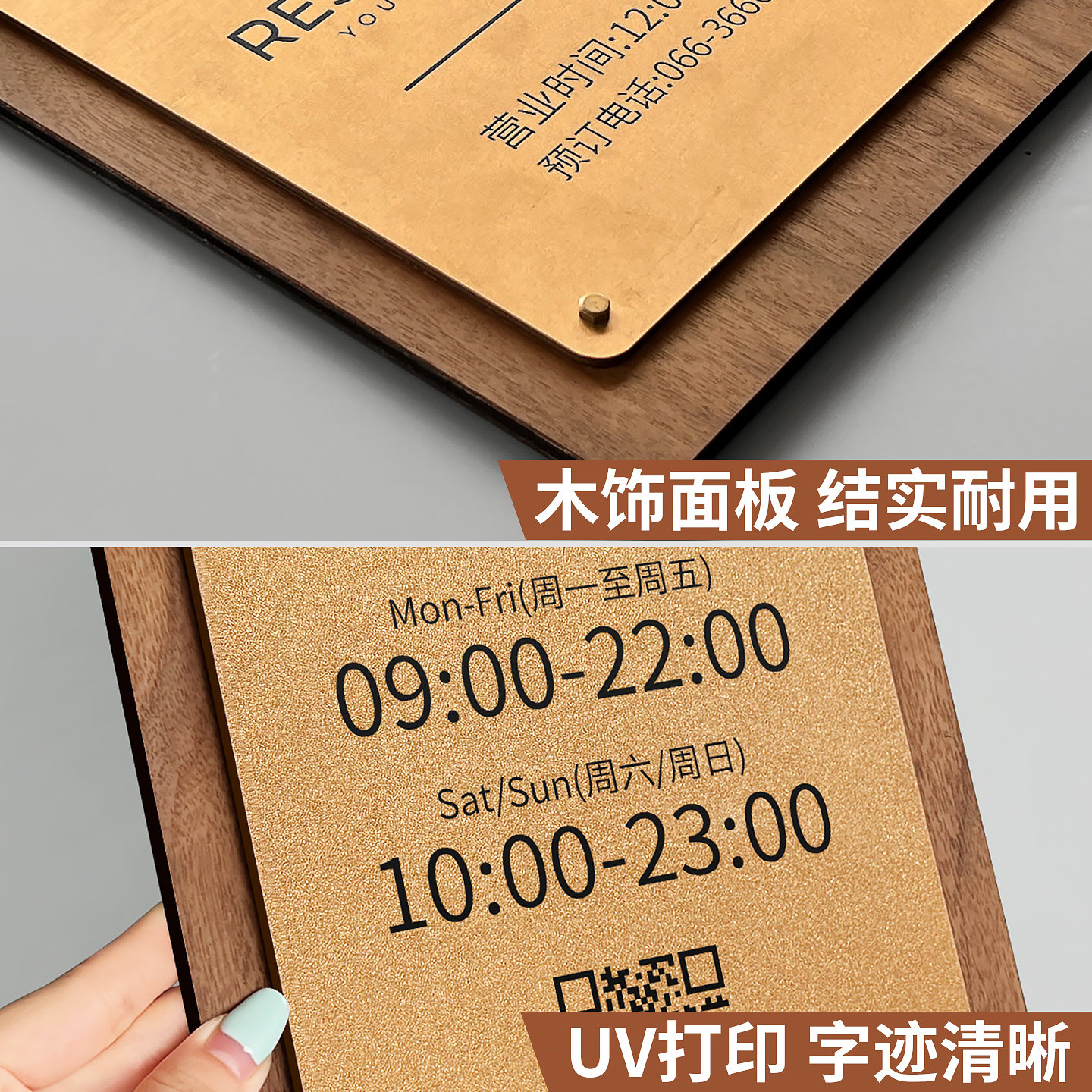营业时间告示牌工作室logo门牌定制店铺门店门口广告牌木质招牌正在营业中挂牌玻璃贴上下班电话号码提示牌子