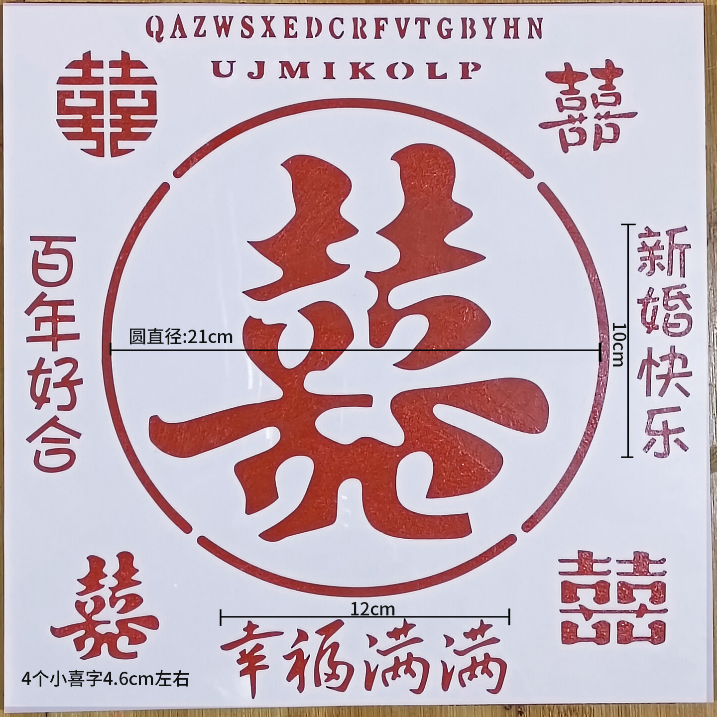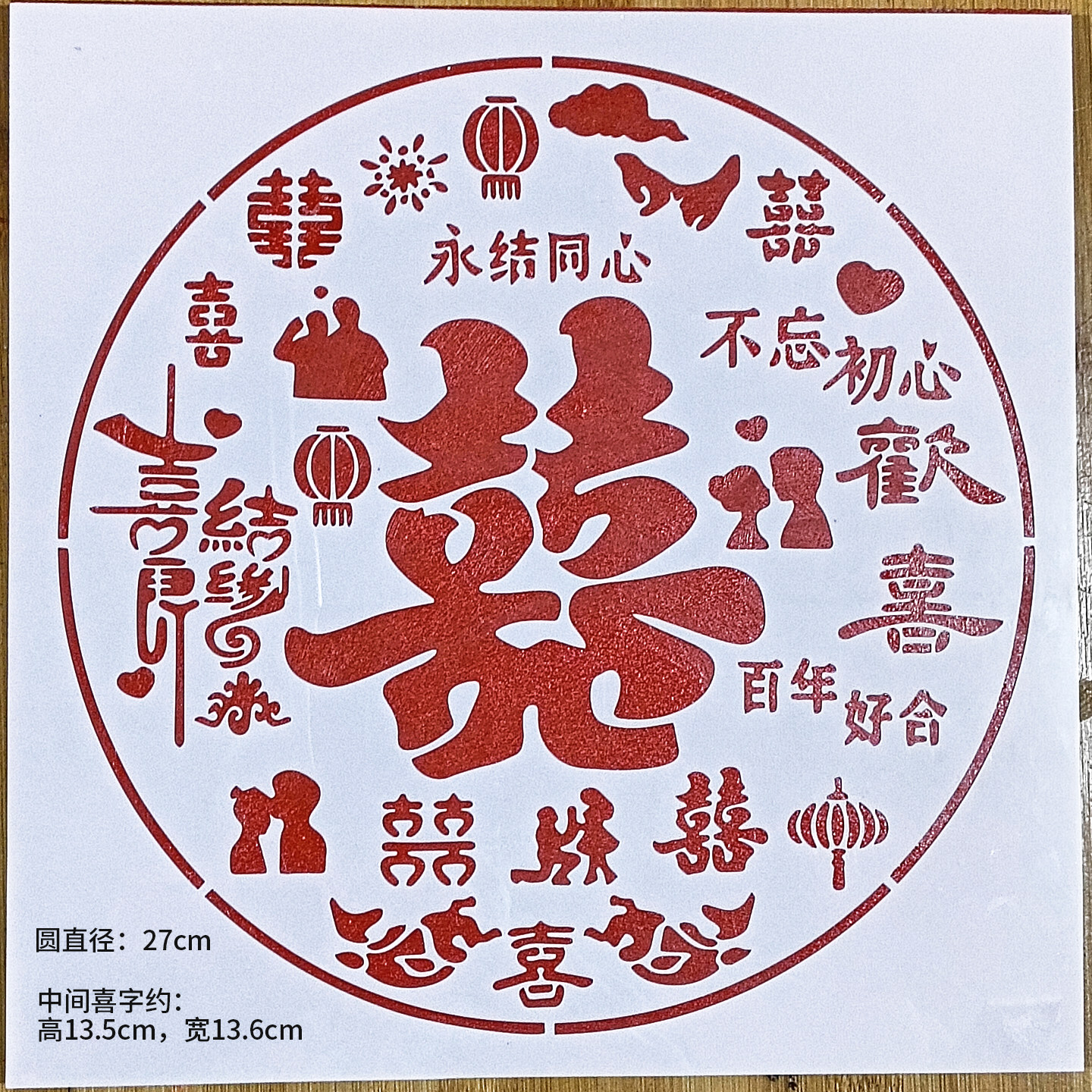 喜字镂空绘画模板涂色新婚双喜字百喜图肌理画diy百福图福字拓印