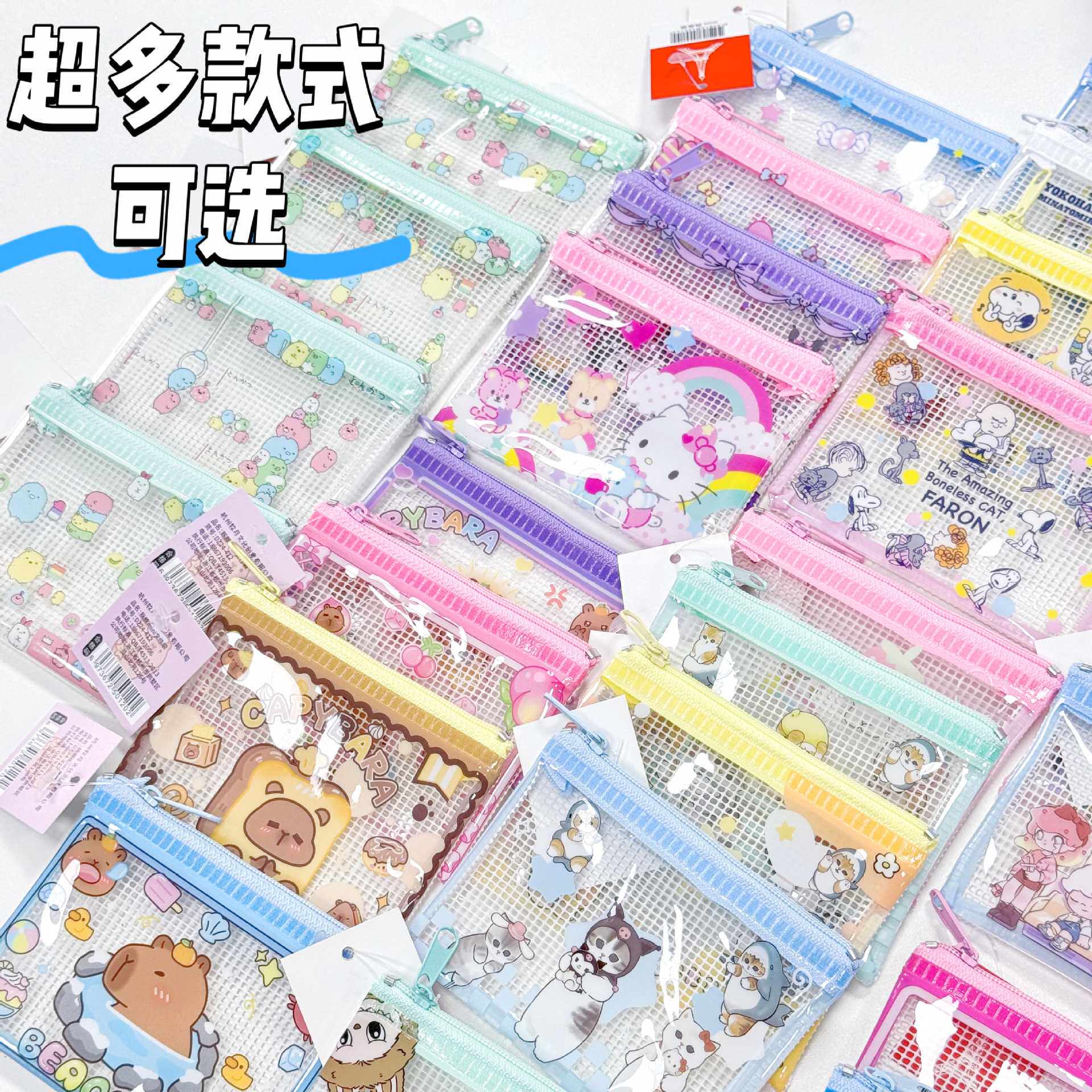 卡通迷你文件袋学生橡皮修正带文具收纳袋随身迷你零钱包一套4个