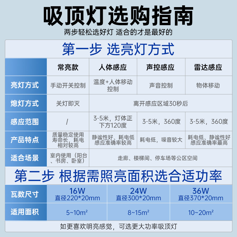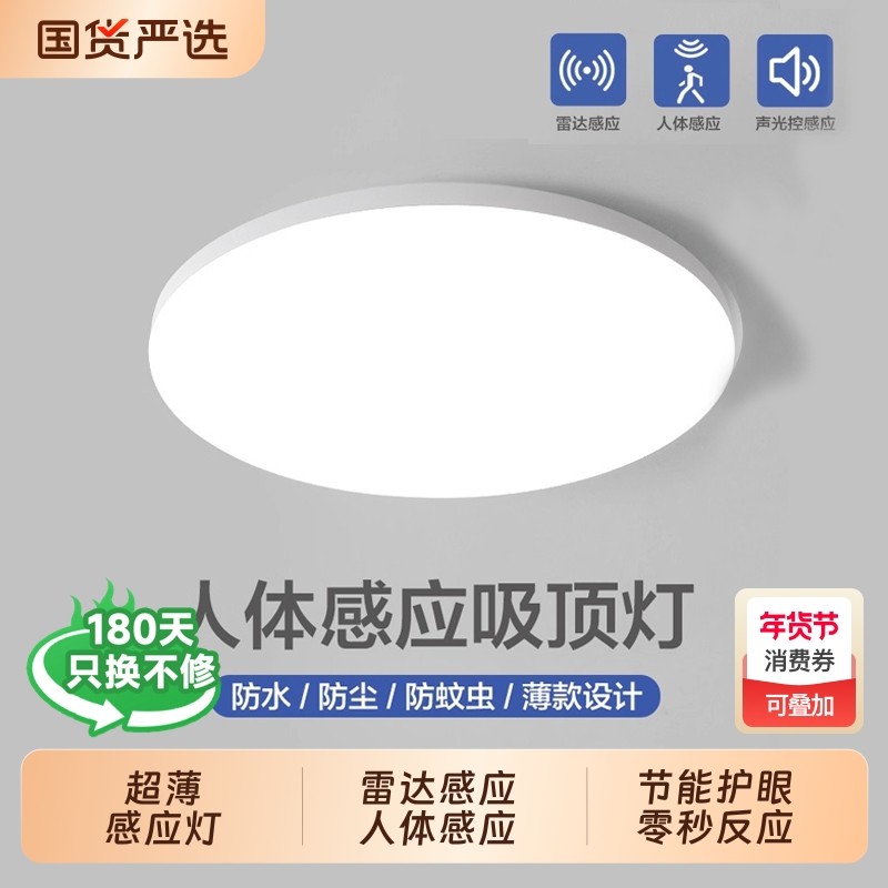 LED雷达自动感应人体声光控吸顶灯过道楼梯楼道走廊红外家用三防