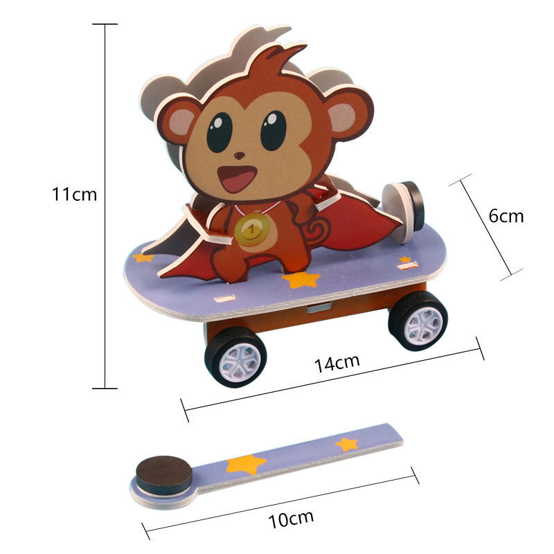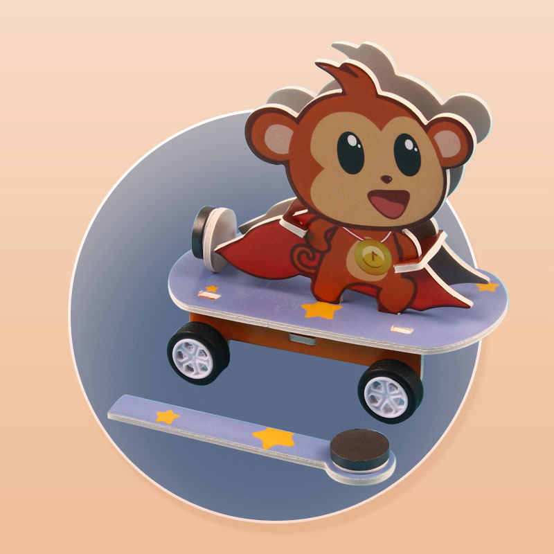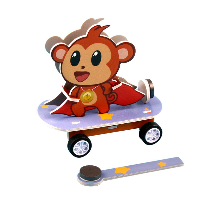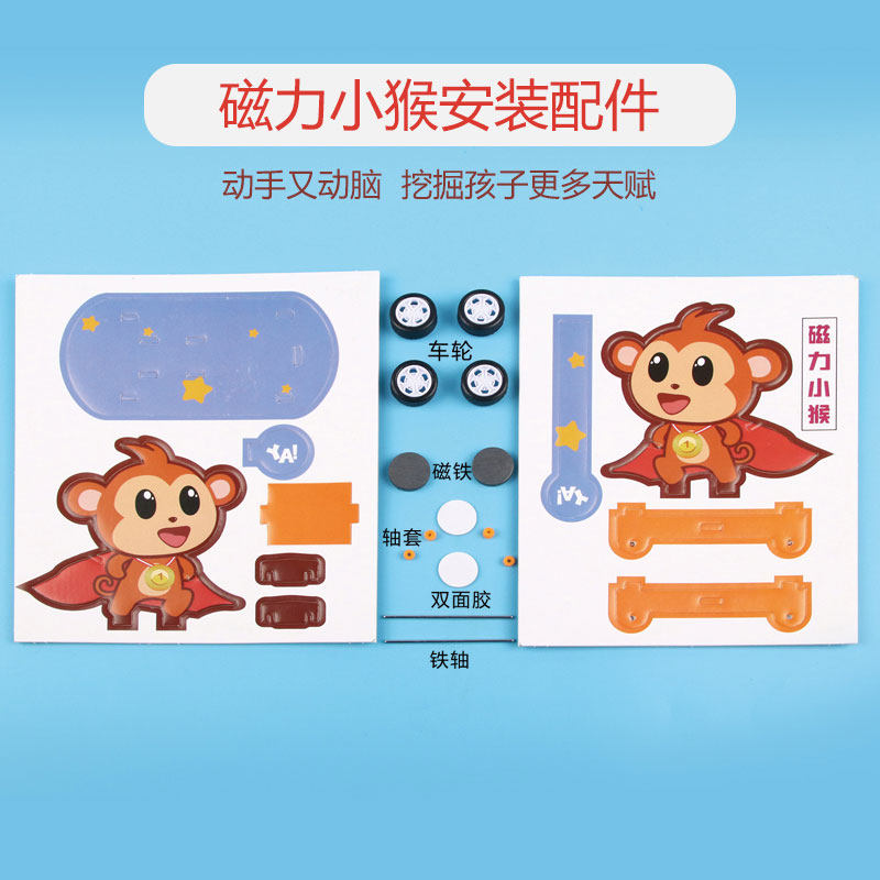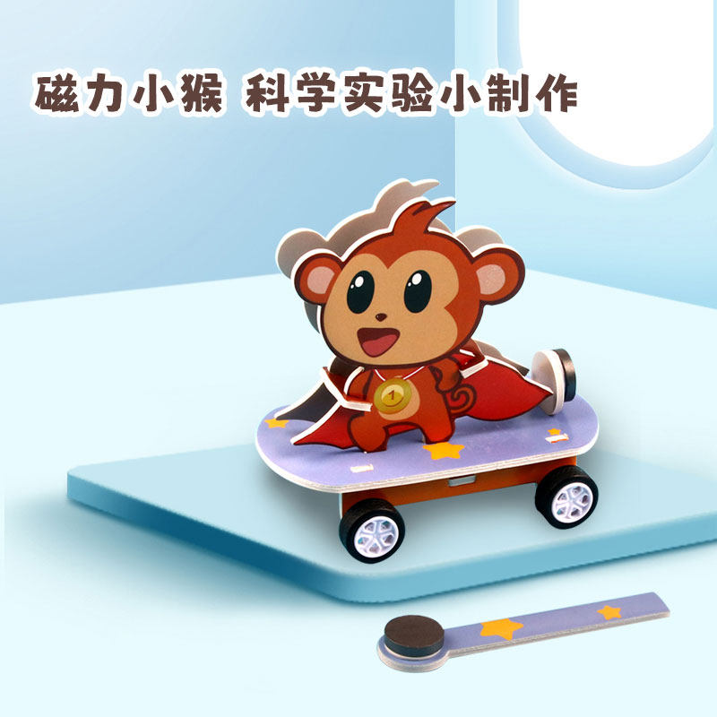磁力滑板科技小制作幼儿园小车diy磁力小猴科学实验手工拼装玩具