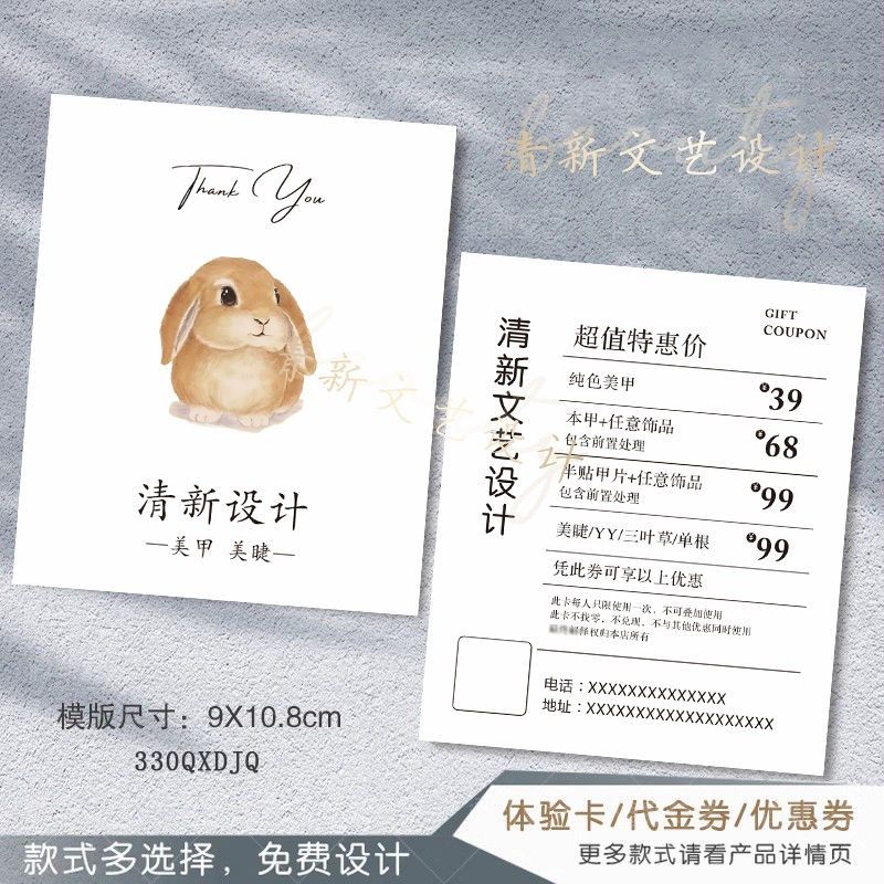 美甲店开业宣传卡片体验卡美容美睫皮肤管理代金券优惠卷制作定做
