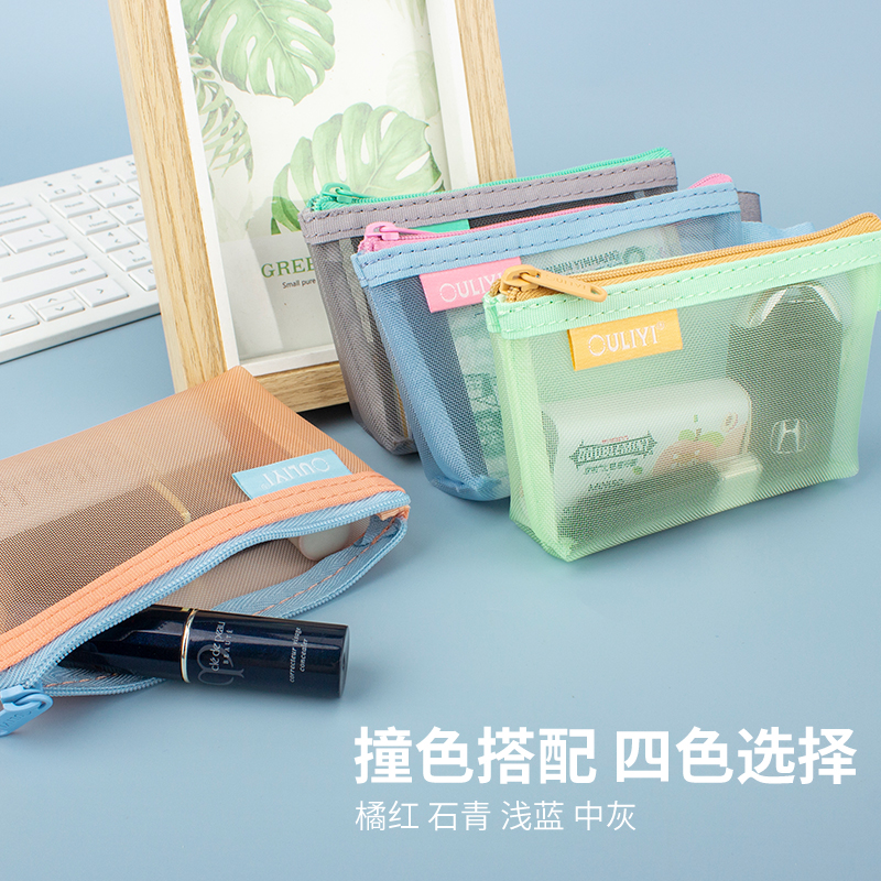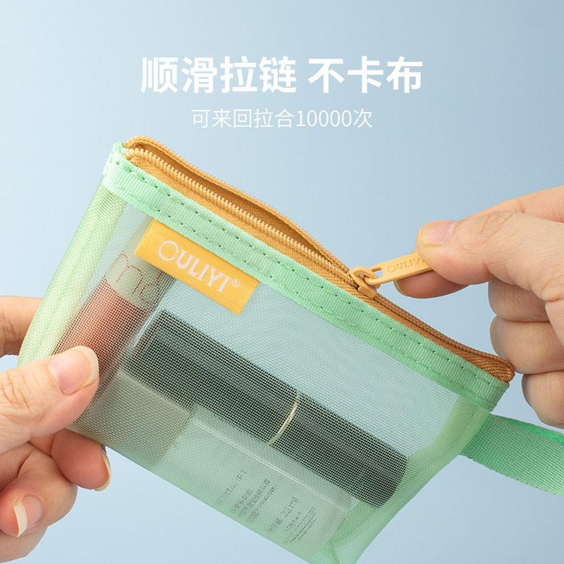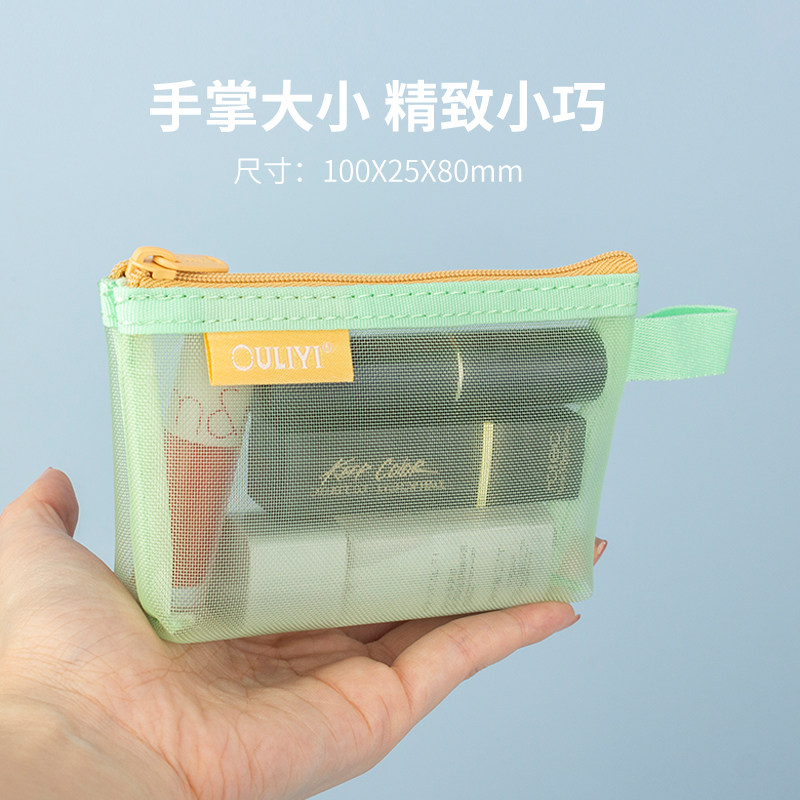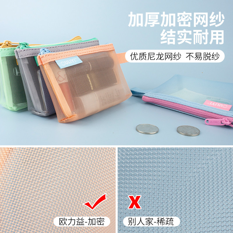 欧力益半透明零钱包分类收纳袋三角钥匙包网纱文件袋mini卡包旅行口红便携化妆包小号小卡袋简约小清新随身包