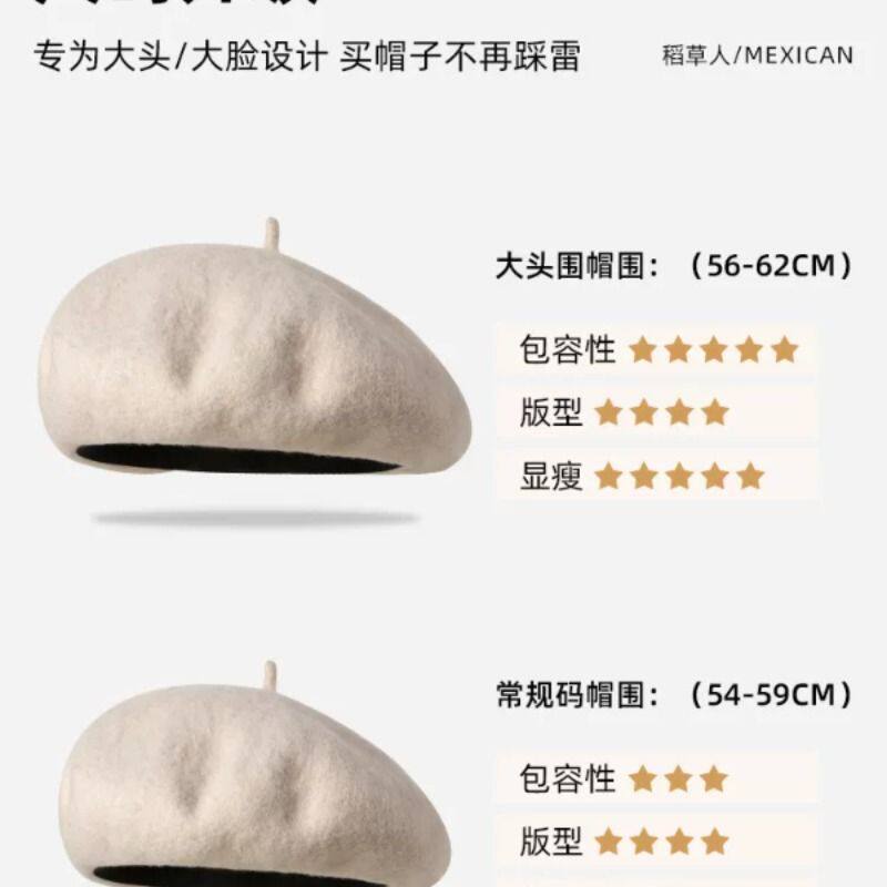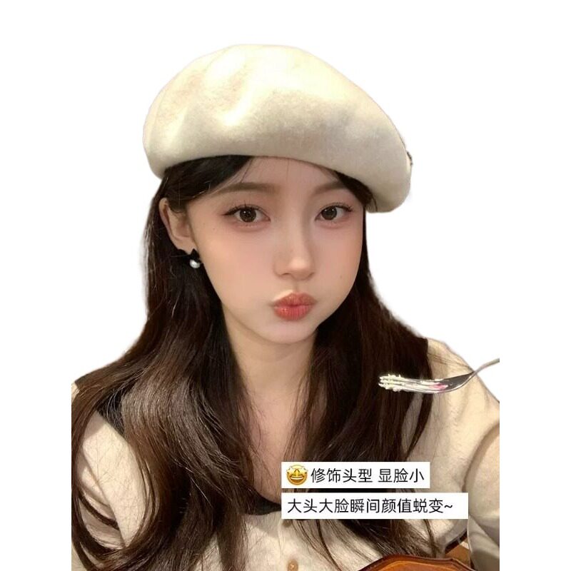 羊毛贝雷帽子女2025新款秋冬季显脸小蓓蕾帽韩版百搭画家帽