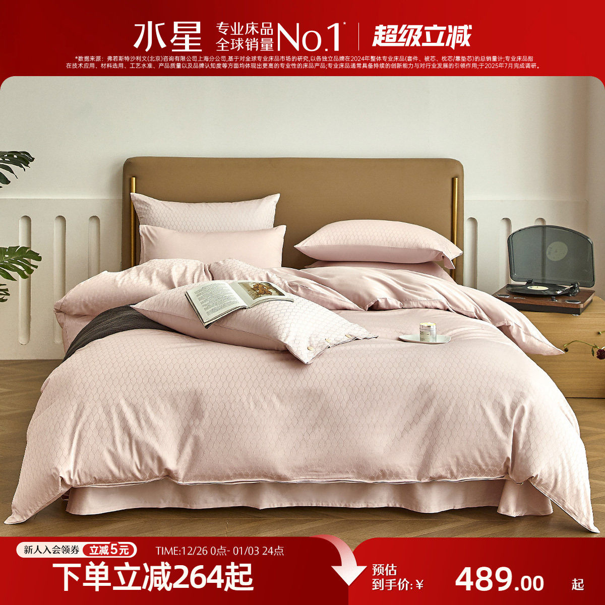 水星家纺60支长绒棉A类四件套全棉贡缎套件简约轻奢床品25年新品