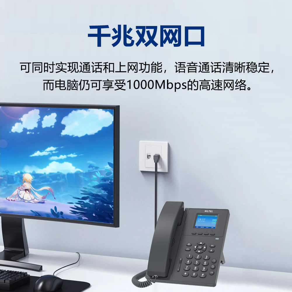 微铃V111E IP电话机商务办公SIP电话 双千兆网口多方会议 桌面彩屏语音大屏办公电话机2.4英寸