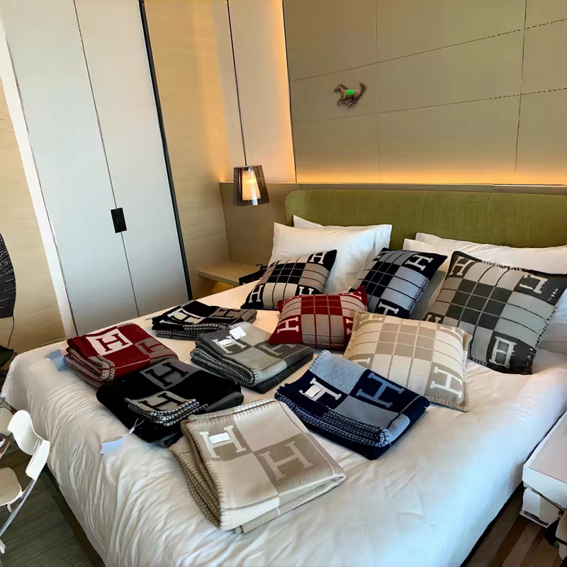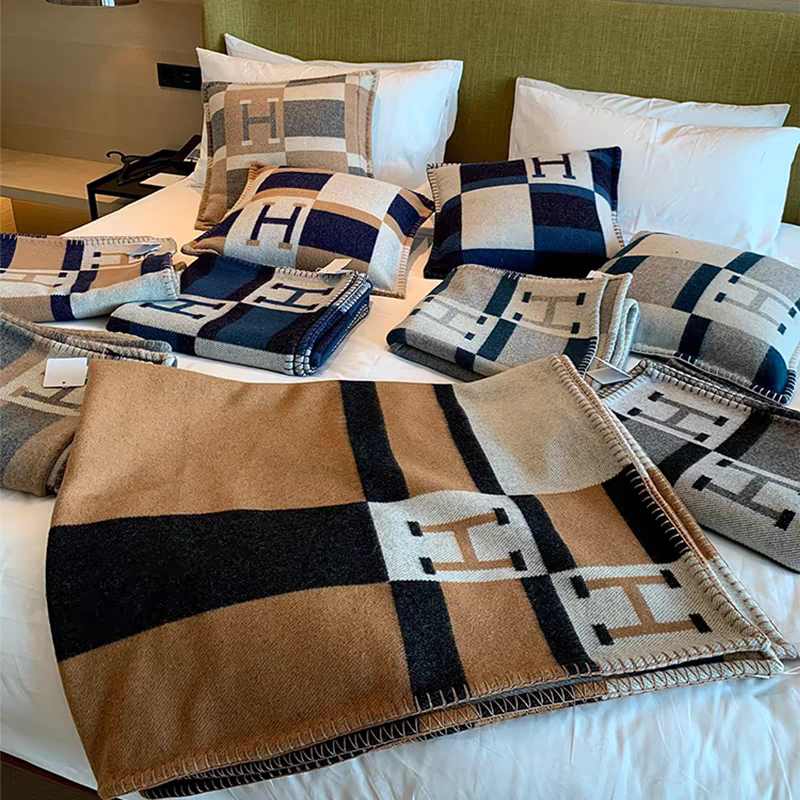 轻奢高版原单H家羊毛毯手工编织盖毯办公午休盖毯四季沙发羊毛毯