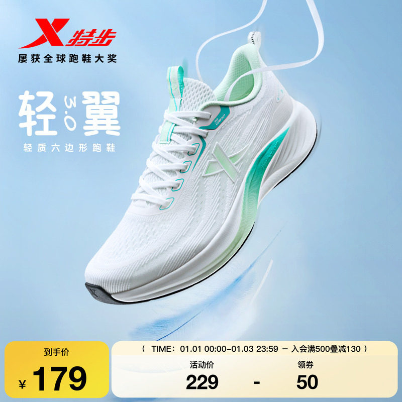 特步轻翼3丨跑步鞋男秋冬舒适网面减震运动鞋子轻便情侣慢跑鞋女