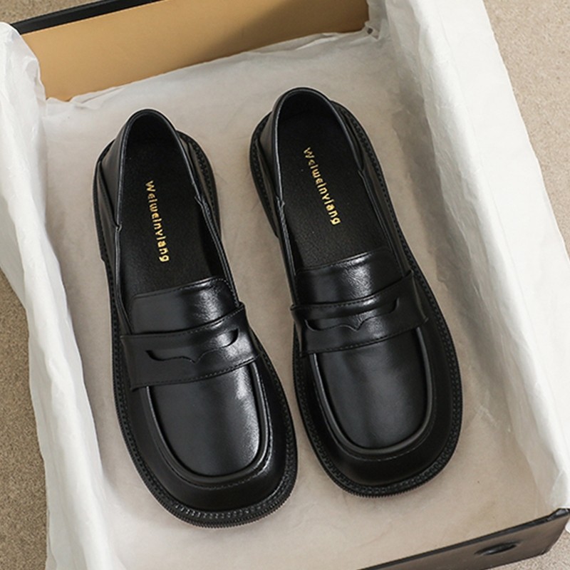 真皮英伦风小皮鞋女鞋子2025春秋新款潮乐福鞋黑色平底单鞋豆豆鞋