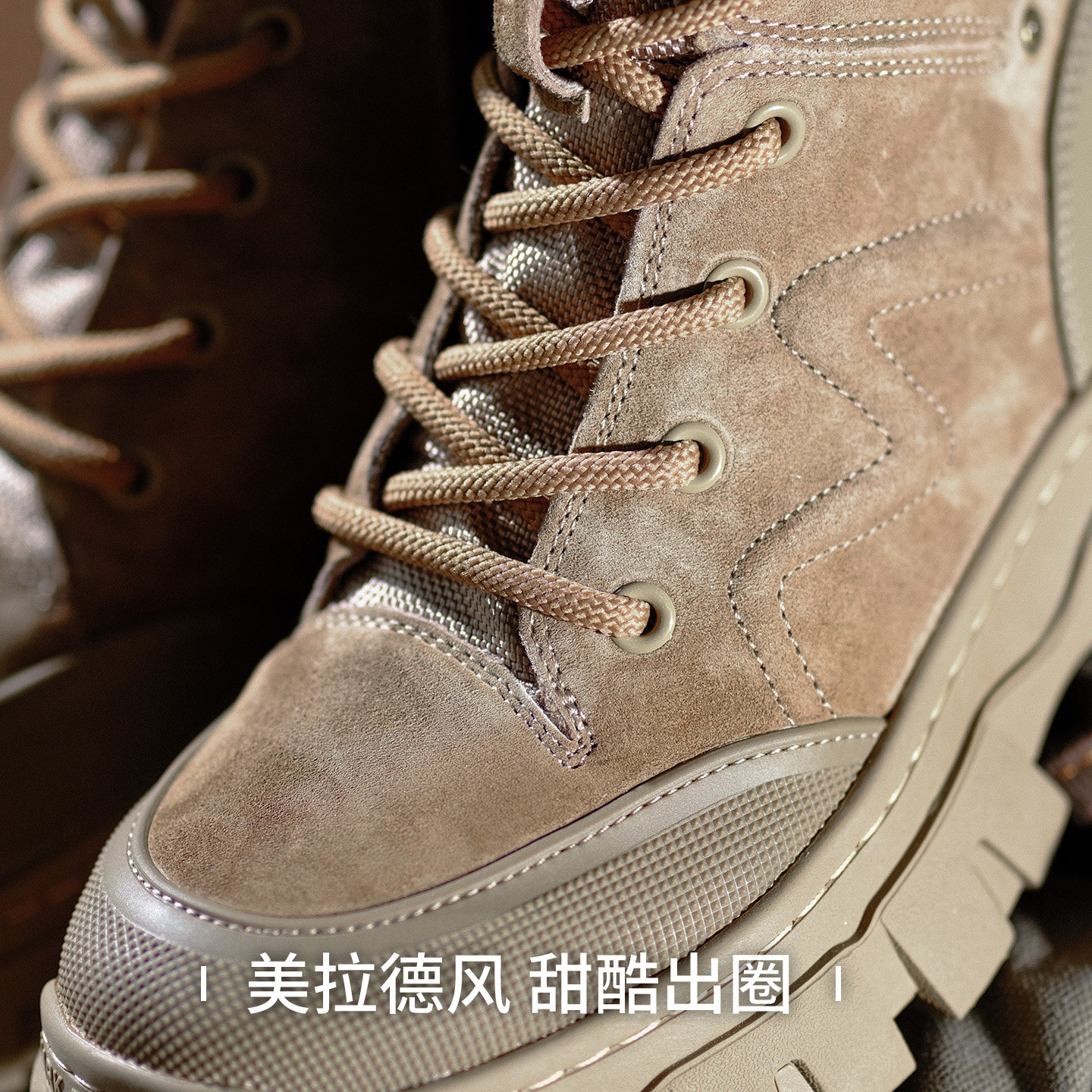 天美意厚底增高加绒英伦马丁靴大黄靴女鞋子休闲短靴皮靴冬季新款