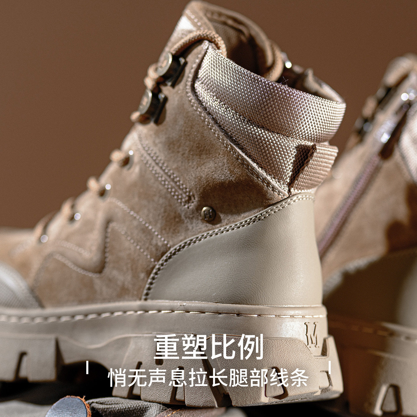 天美意粗跟厚底增高加绒英伦马丁靴女鞋子休闲短靴皮靴2025冬新款