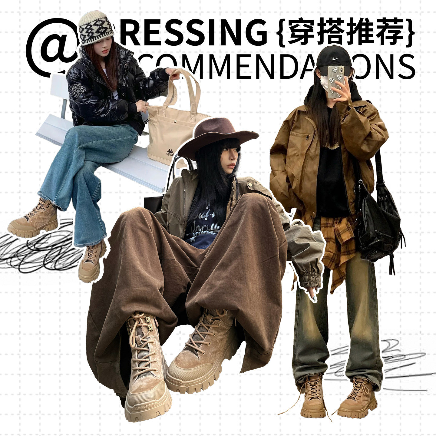 马克华菲美拉德厚底马丁靴女2025秋新款棕色废土风增高短靴配裙子