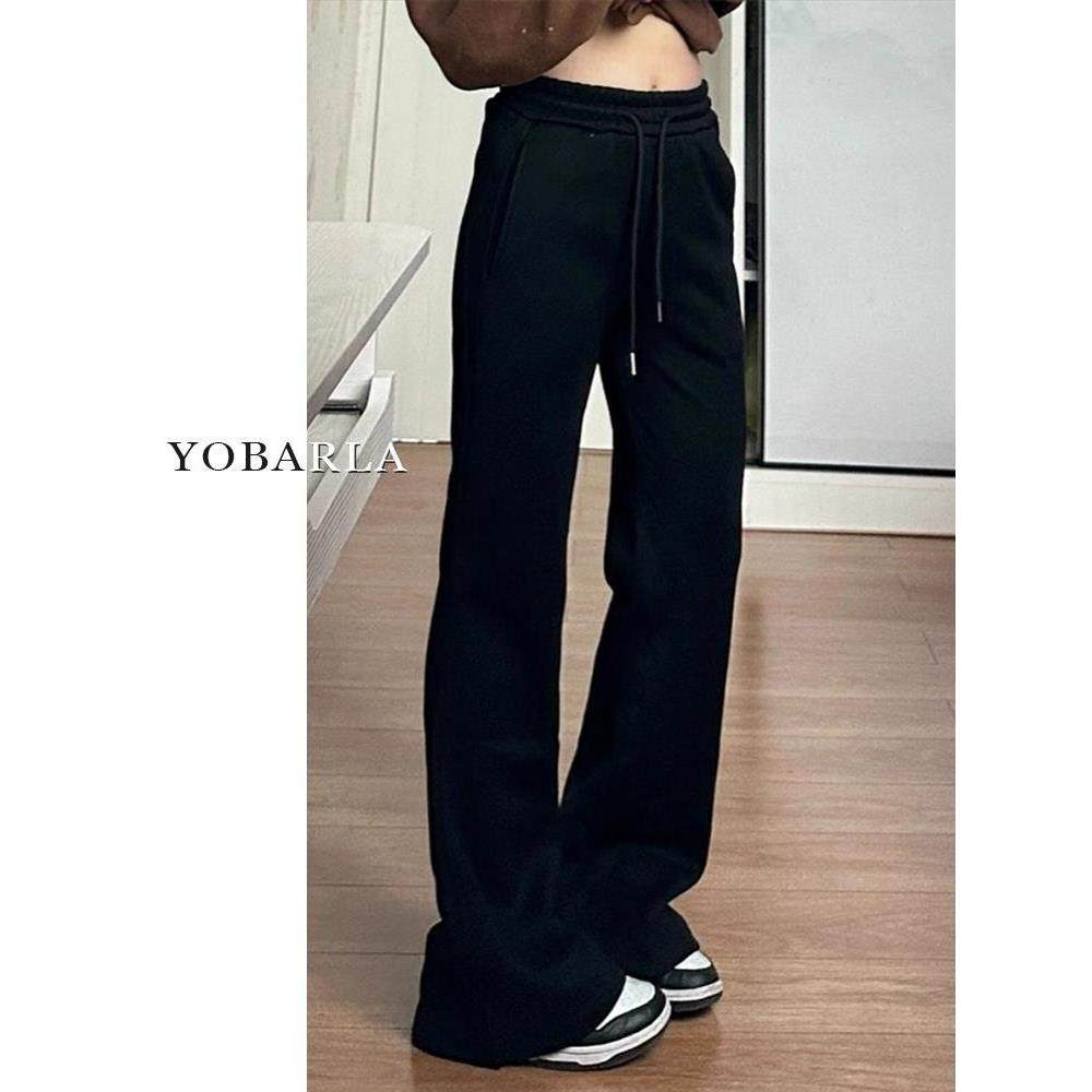 梨型身材微喇休闲裤女2025秋冬加绒胖妹妹mm高腰弹力显瘦运动卫裤
