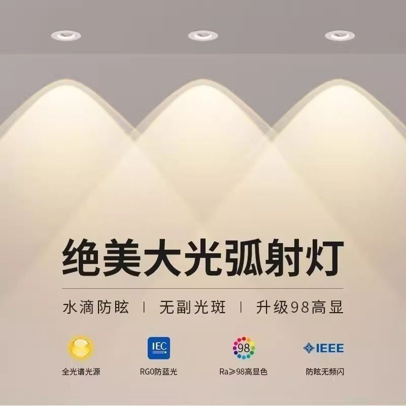 隐形弧面无边框护眼射灯小山丘嵌入式客厅筒射灯无主灯防眩洗墙灯