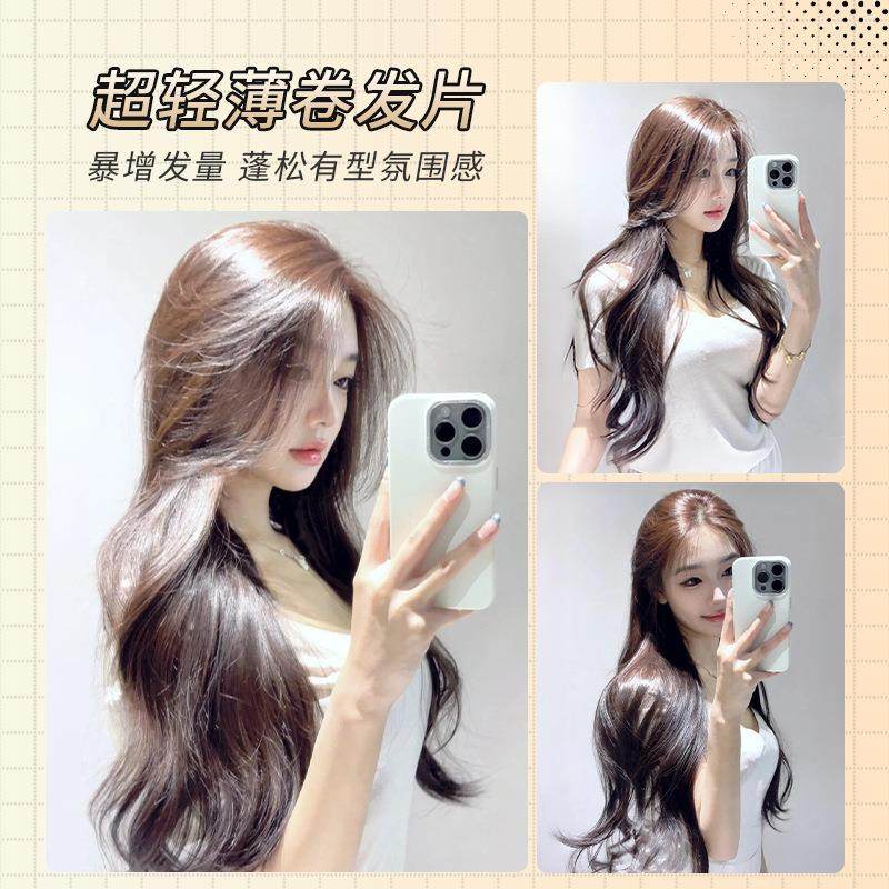 假发片一片式超轻薄量黑长直仿真发小片式无痕接发片挂耳卷发波浪