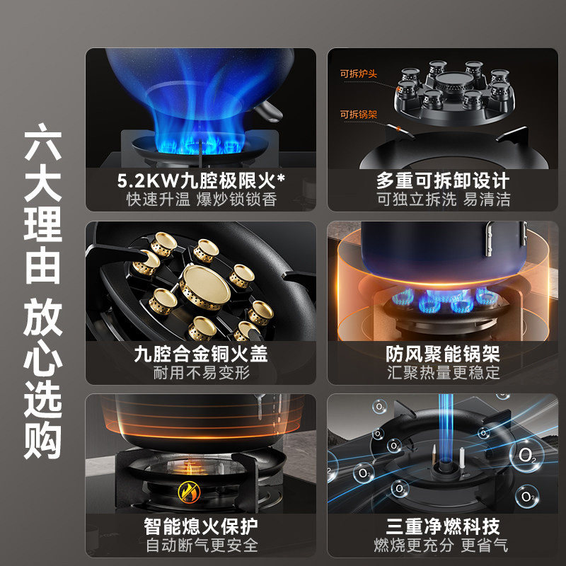 苏泊尔九腔猛火燃气灶煤气炉灶具家用双灶台嵌入式天然液化气YB13
