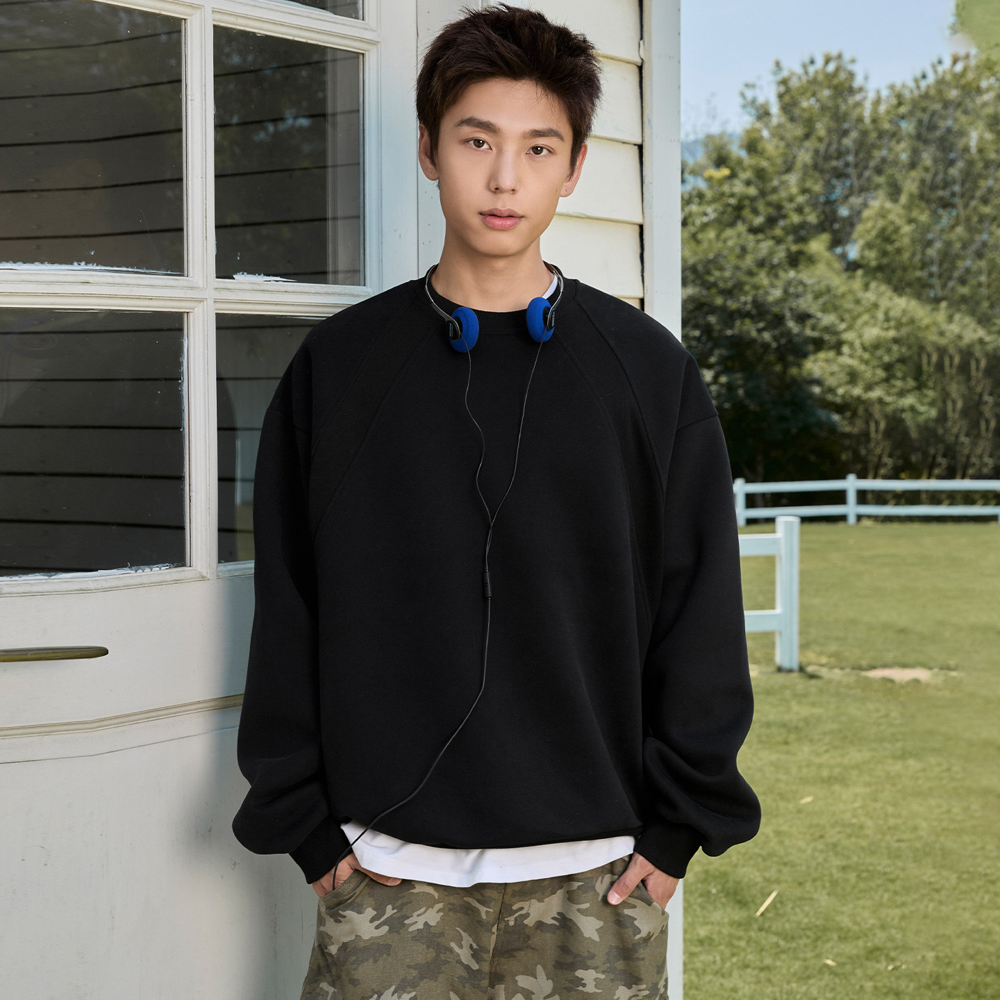 班尼路重磅卫衣男款秋季基础纯色圆领内搭男款宽松大码正肩套头衫