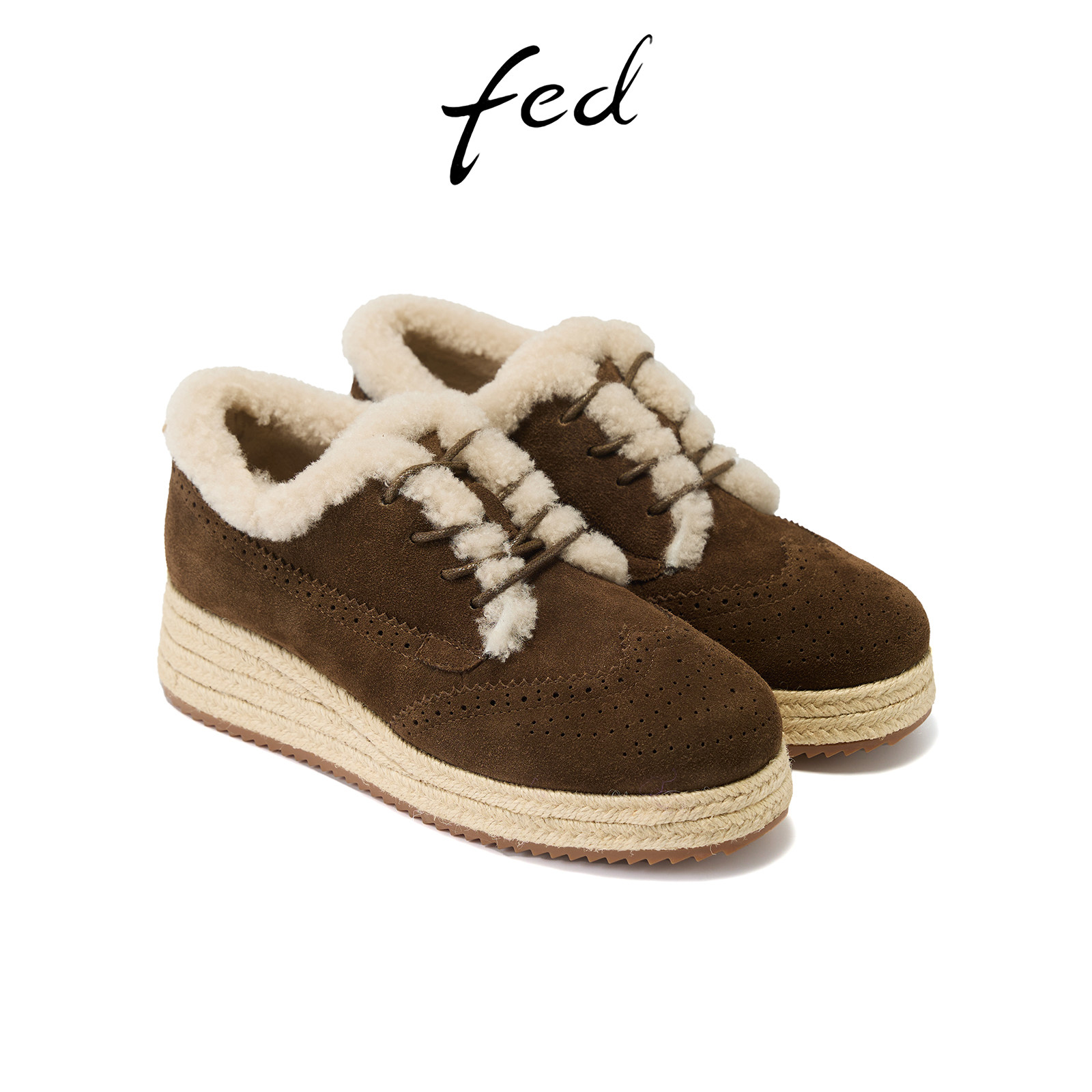 fed坡跟单鞋冬季新款女鞋厚底加绒毛毛鞋保暖棉鞋女款S1111-YA027