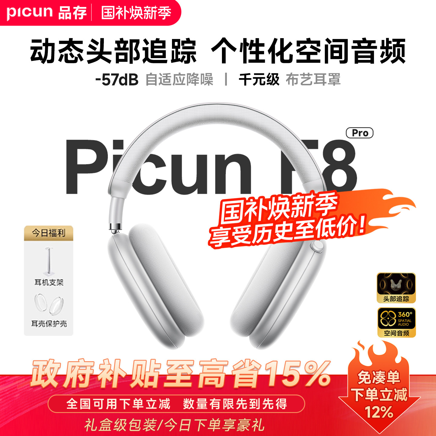 Picun品存F8主动降噪头戴式耳机蓝牙无线游戏电脑耳麦适用苹果MAX