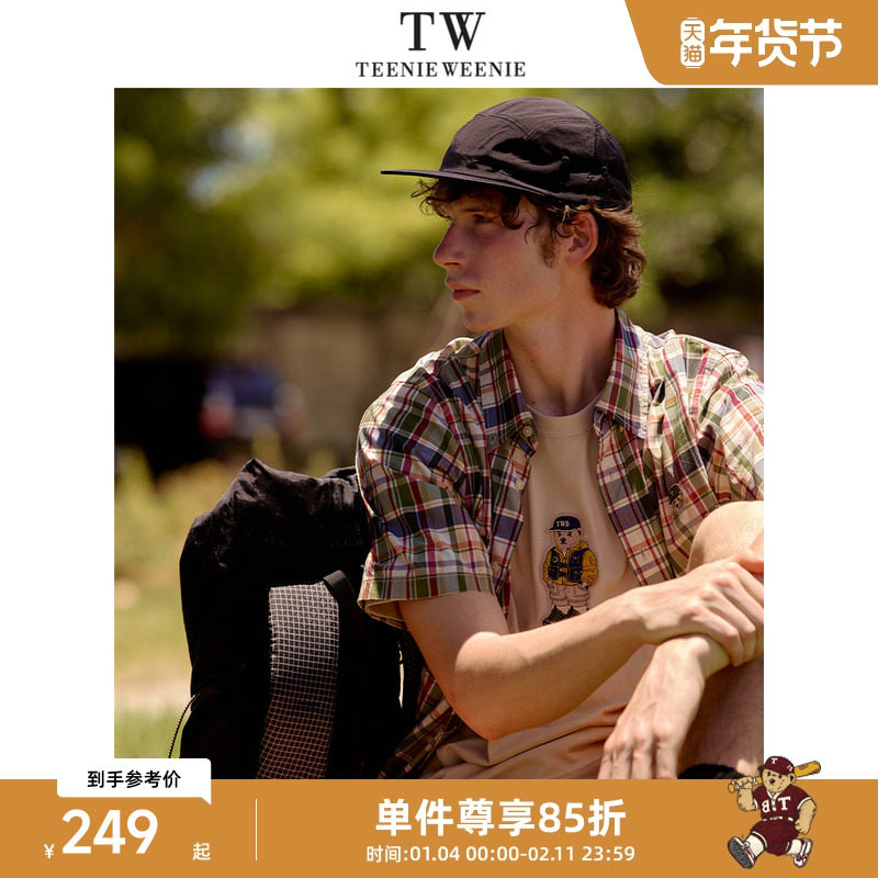 TeenieWeenie小熊男装衬衫新款格子清凉小众复古翻领短袖