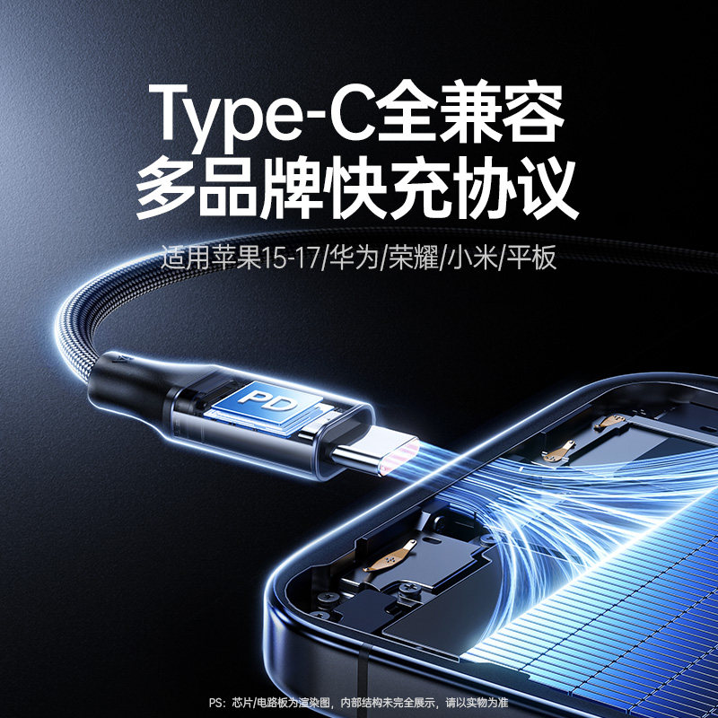 绿联磁吸充电线适用苹果16iphone17pro15华为安卓贴贴线usb转typec车载CarPlay编织tpyec100w超级快充数据线