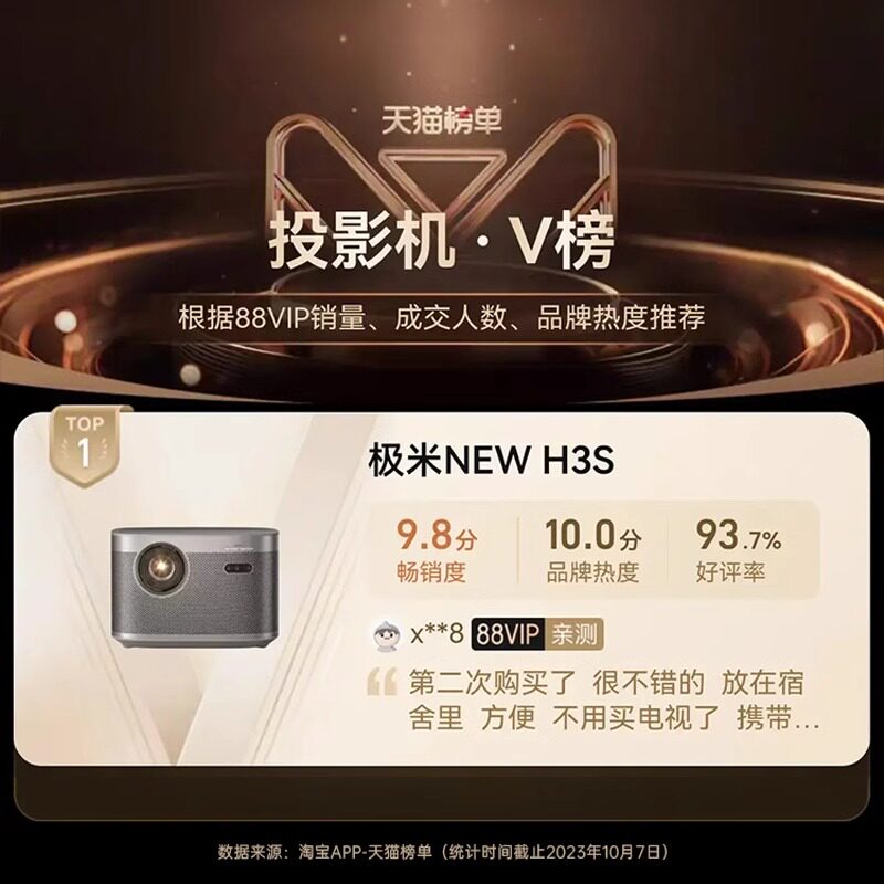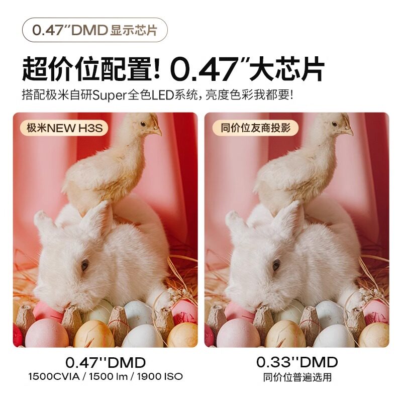 极米NEWH3S投影仪家用1080P超高清高亮度超清智能投影机大屏客厅白墙直投100寸120寸智能家庭影院海外国际版