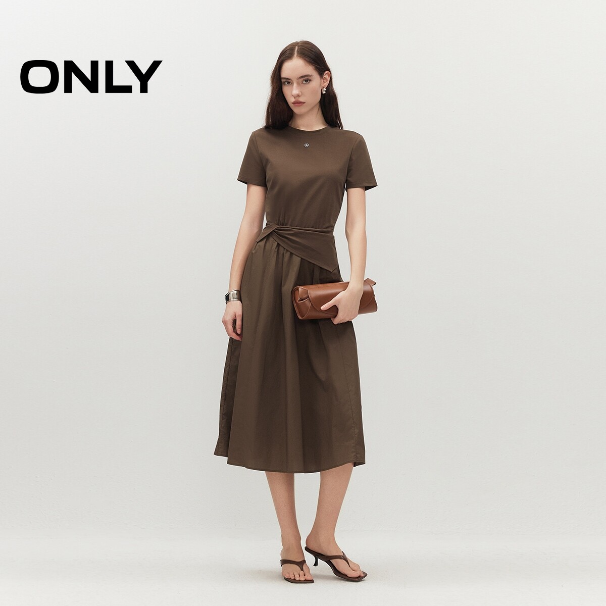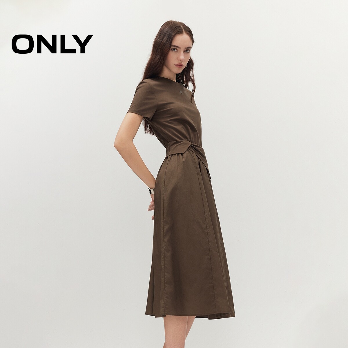 ONLY2026春季新款含莱赛尔假两件拼接亲肤柔软短袖T恤连衣裙女