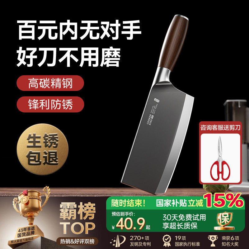 炊大皇菜刀家用刀具厨房切肉切菜刀切片砍骨刀不锈钢锋利厨师专用