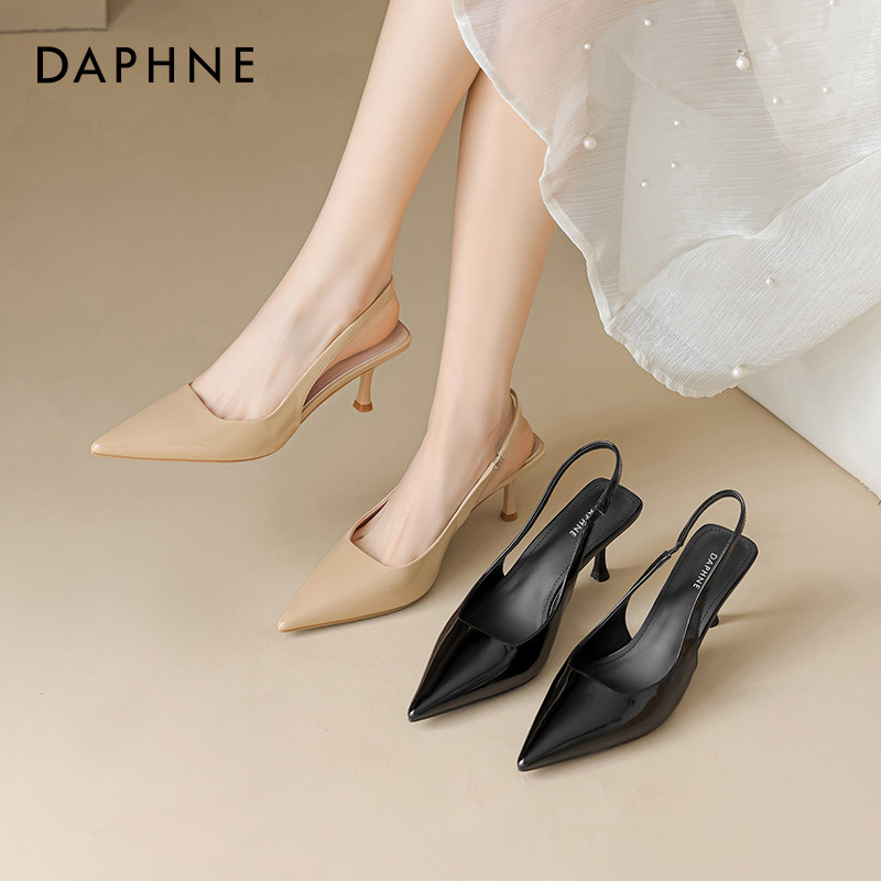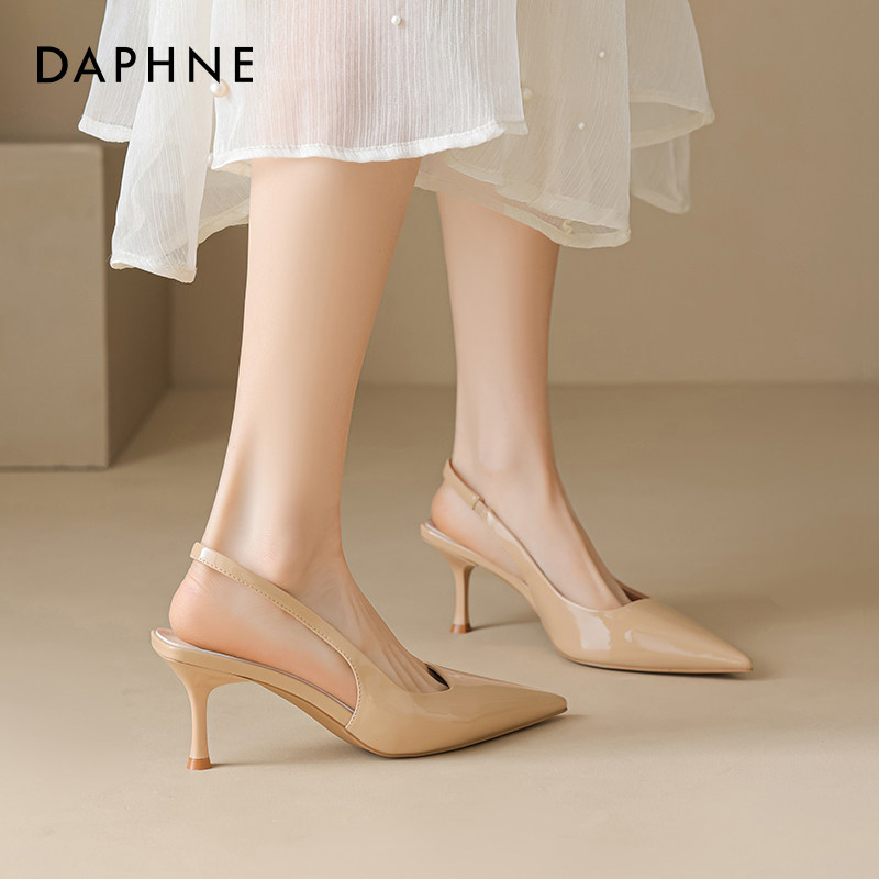 达芙妮高跟鞋女2026春夏新款包头尖头后空凉鞋一脚蹬绝美细跟单鞋