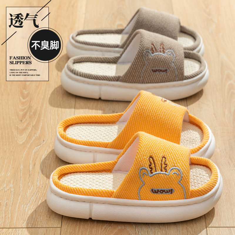 亚麻拖鞋家居女士四季家用情侣室内防滑静音地板居家凉拖男厚底