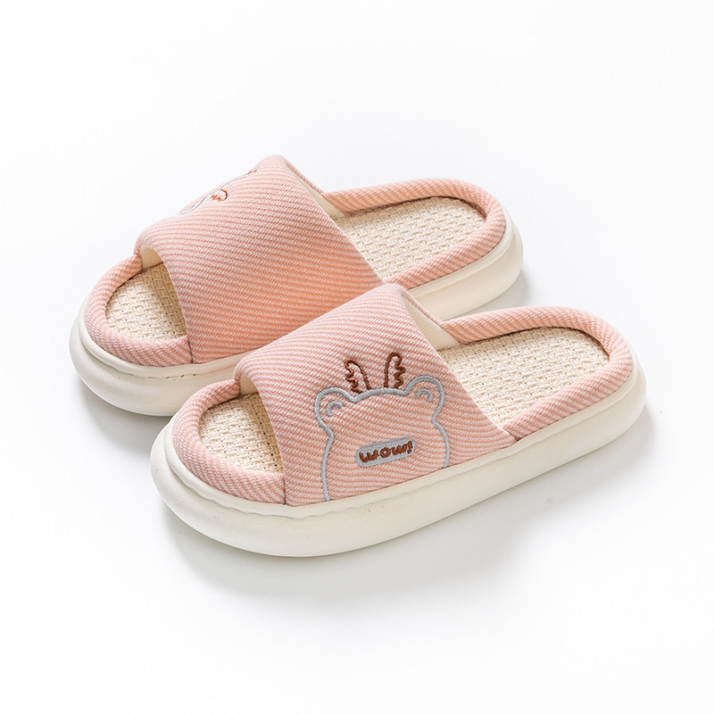买1送1亚麻拖鞋女士情侣家居一对静音防滑家用招待客人棉麻拖鞋男
