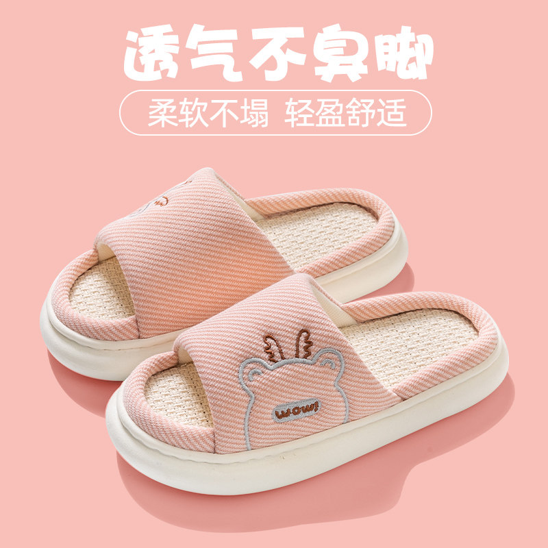 买1送1亚麻拖鞋女款室内家居防滑静音防臭四季家用情侣棉麻布拖鞋