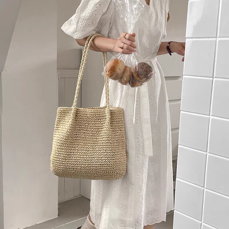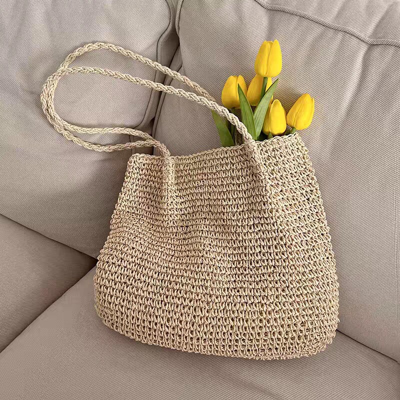 大容量草编包手提简约休闲草包编织包海边度假沙滩包藤编包女收纳