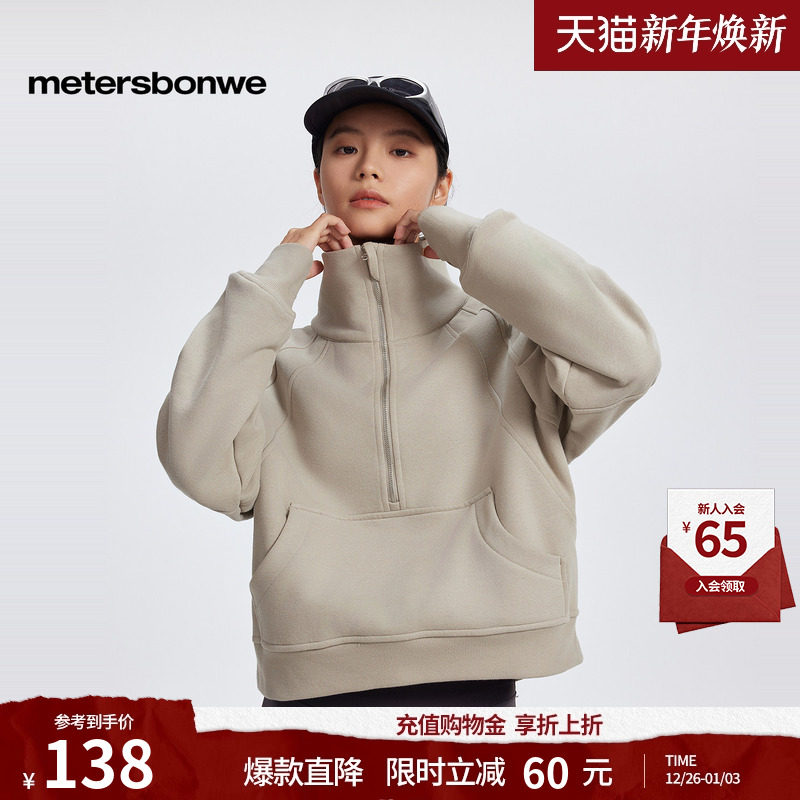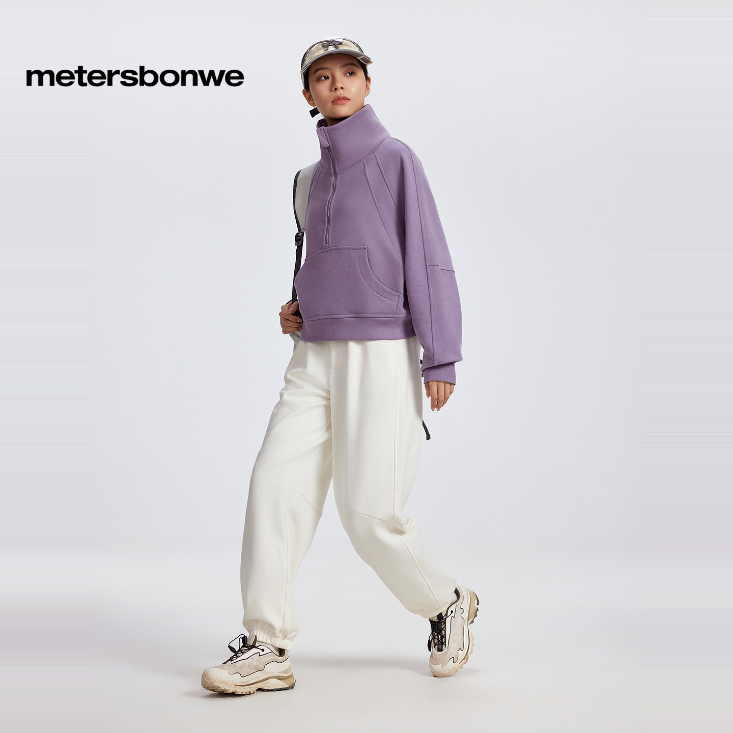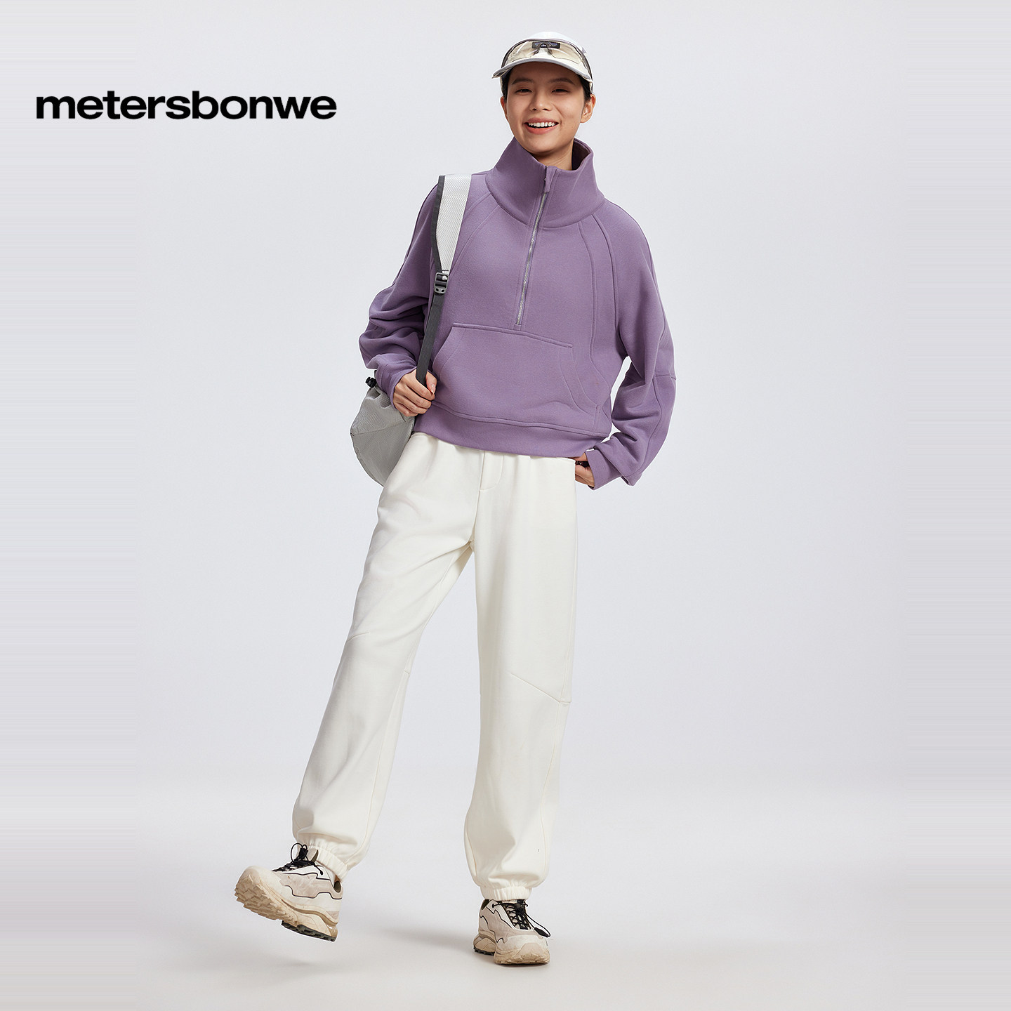 美特斯邦威短卫衣女士秋冬季拉链立领舒适柔软百搭纯色简约上衣