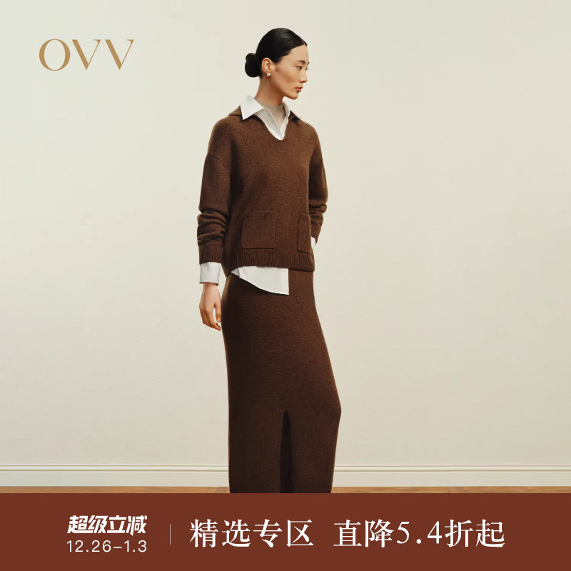 OVVOutlet秋冬热卖女装简约时尚舒适羊毛混纺开衩设计半身裙