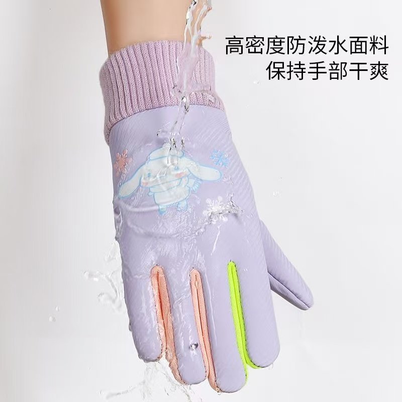 手套女冬季可爱加绒加厚保暖儿童2024新款学生防寒触屏露指男手套