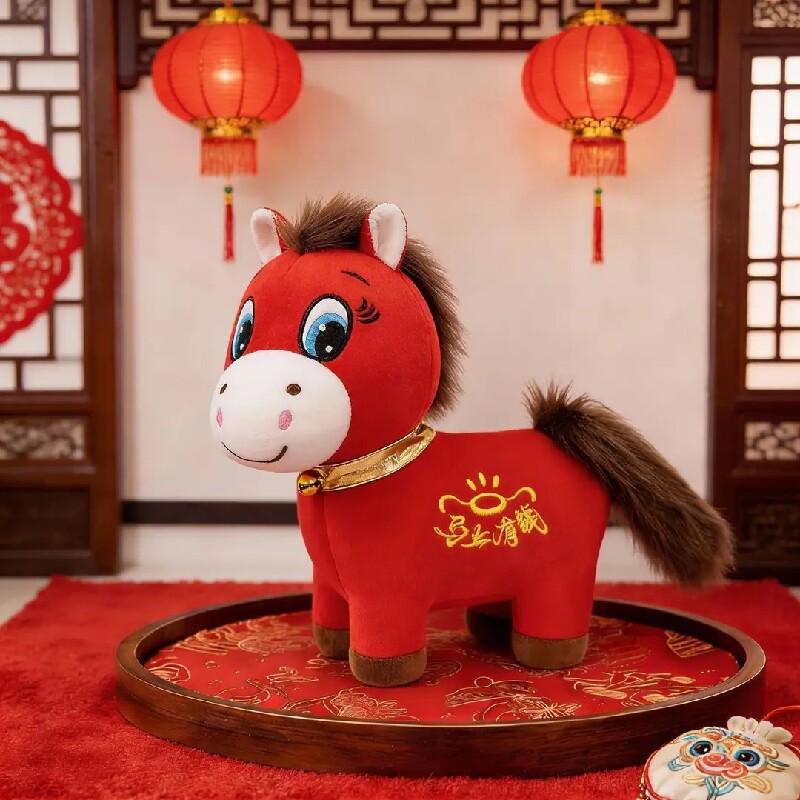 马年吉祥物公仔毛绒玩具红色生肖马玩偶摆件新年活动礼物定制Logo