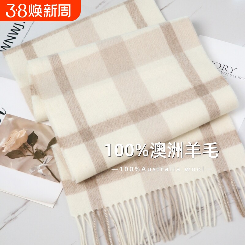 围巾女冬季2025爆款英国100%澳洲羊毛格子学生男保暖情侣围脖实用