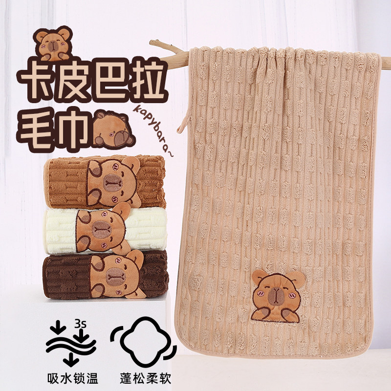 毛巾可爱卡皮巴拉洗脸毛巾比纯棉柔软吸水速干男女儿童通用不掉毛