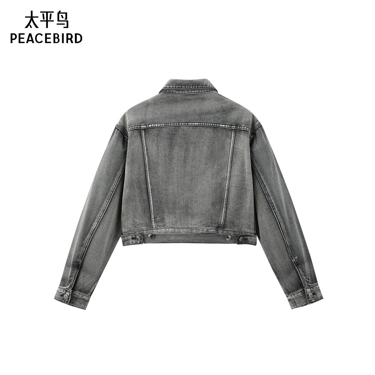 太平鸟2025年新款水洗黑灰色牛仔外套女宽松休闲品质感A3BBF1507