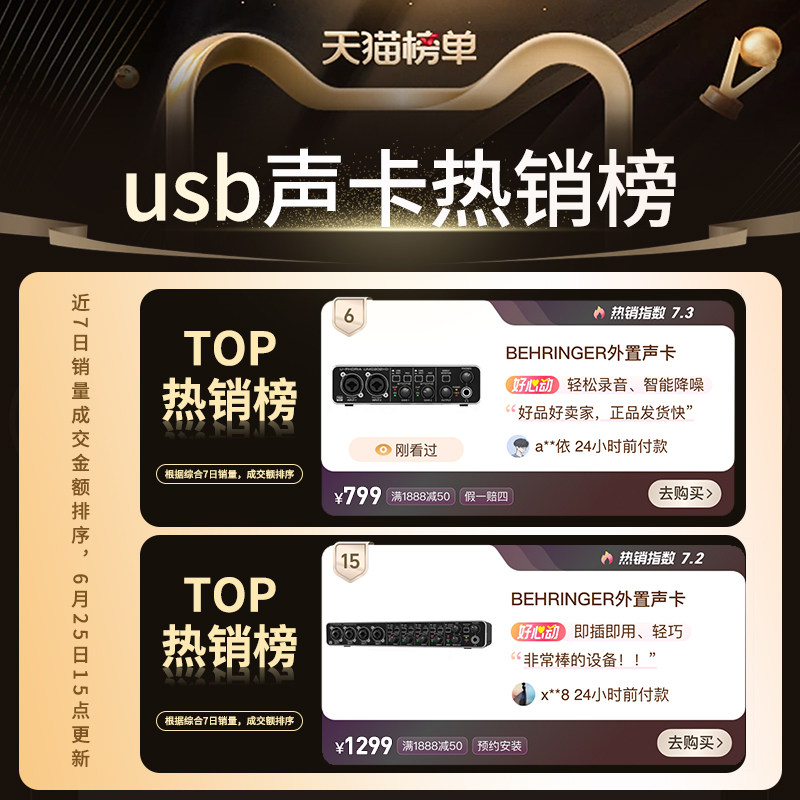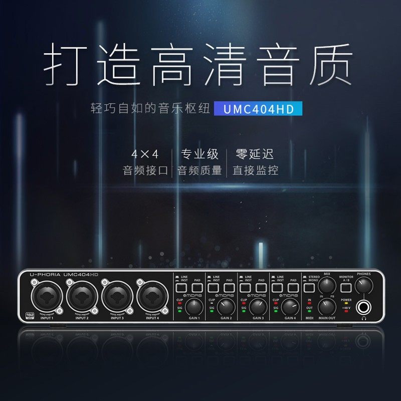 BEHRINGER百灵达UMC404HD专业录音电脑USB外置声卡直播四路多通道