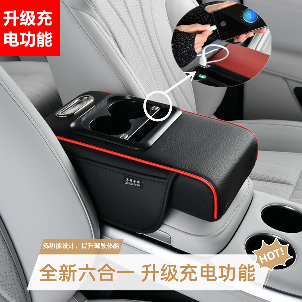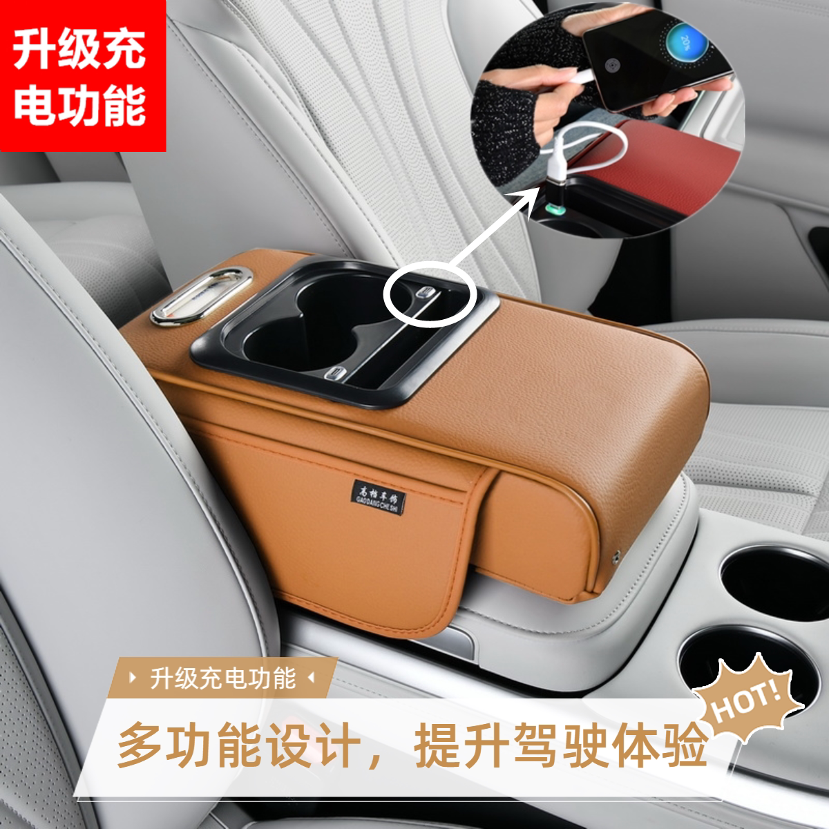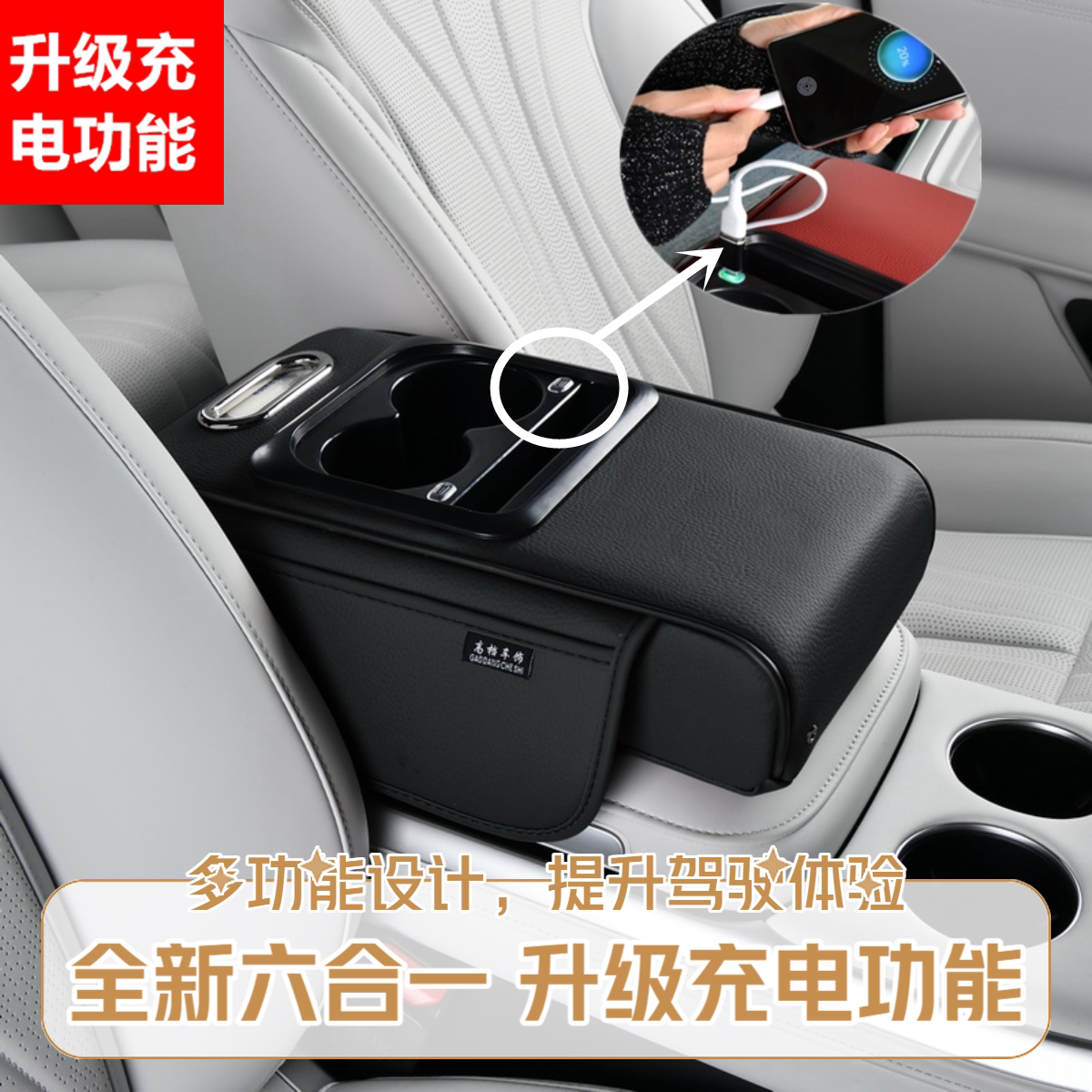 通用充电款中央扶手箱增高垫车载纸巾盒水杯架储物袋皮革保护垫