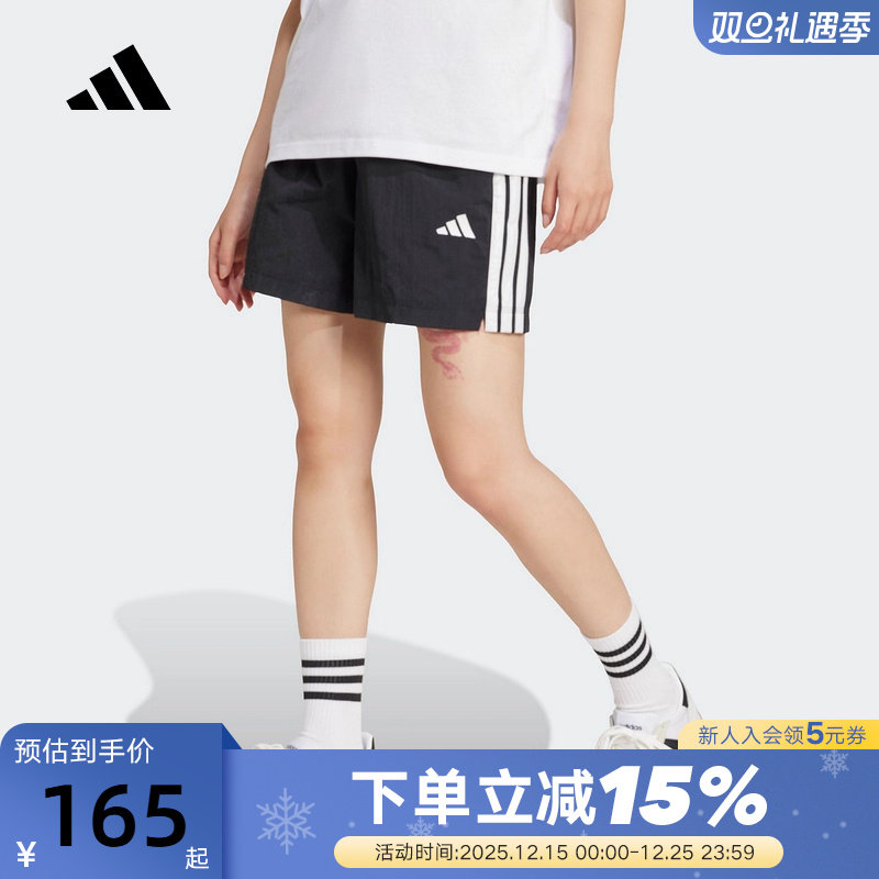 adidas阿迪达斯健身三分裤夏女三条纹运动透气梭织短裤JE1309