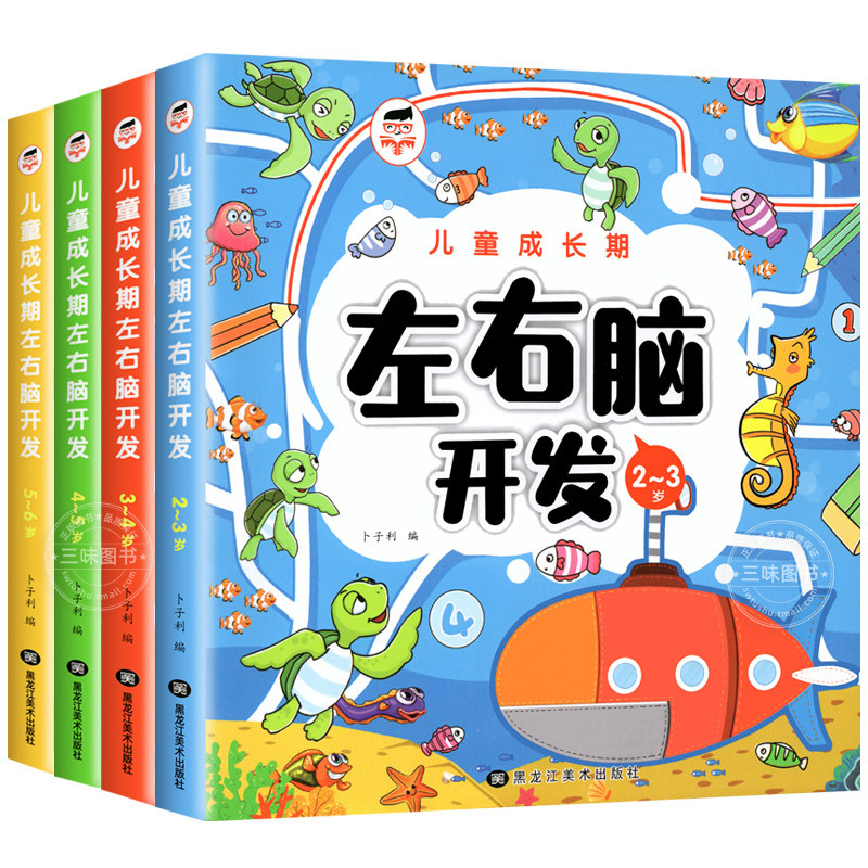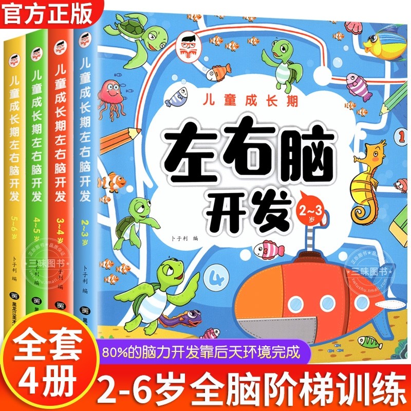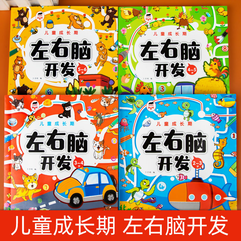 全套4册 儿童左右脑智力开发 益智游戏启蒙认知书籍2-4-6岁幼儿园学前班基础逻辑力专注力训练幼小衔接专项训练