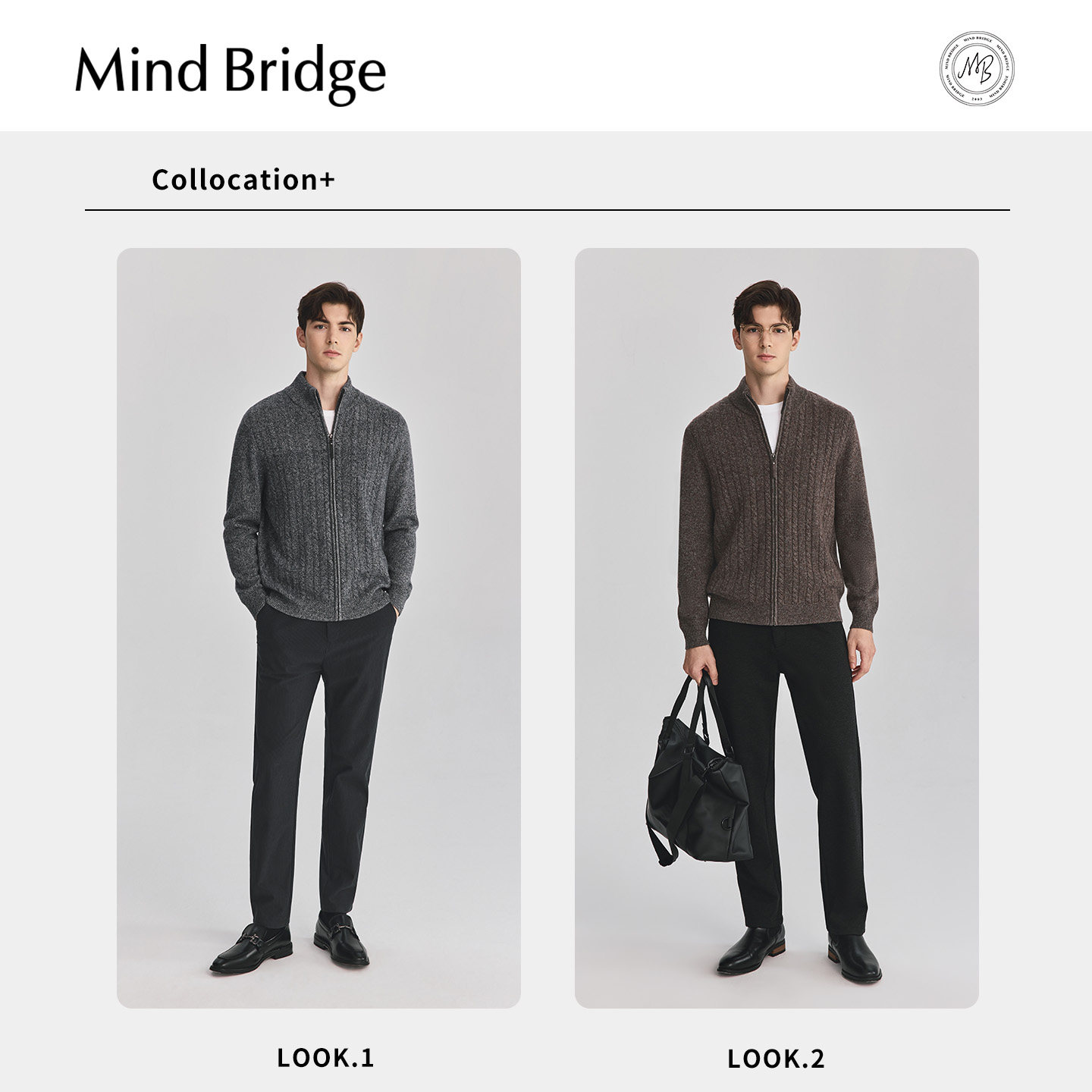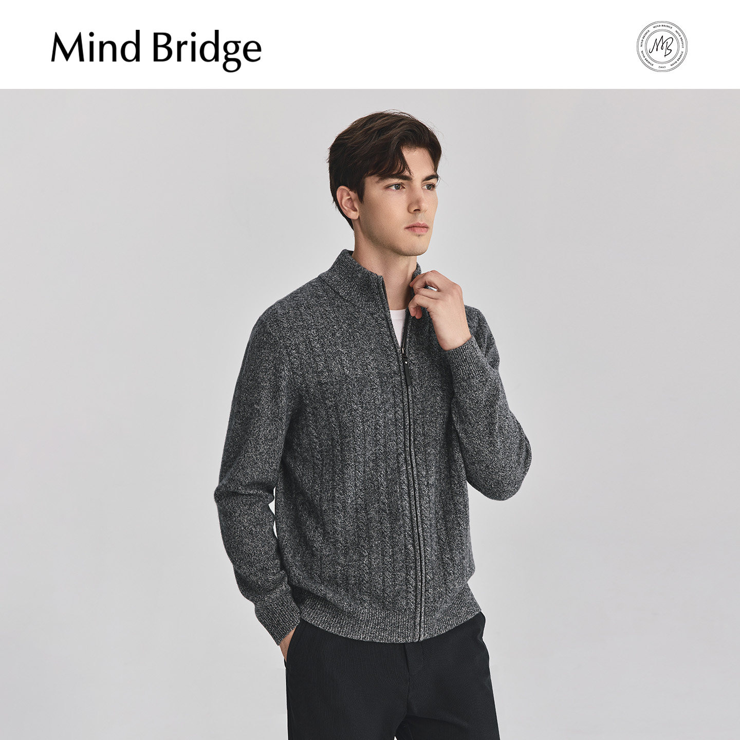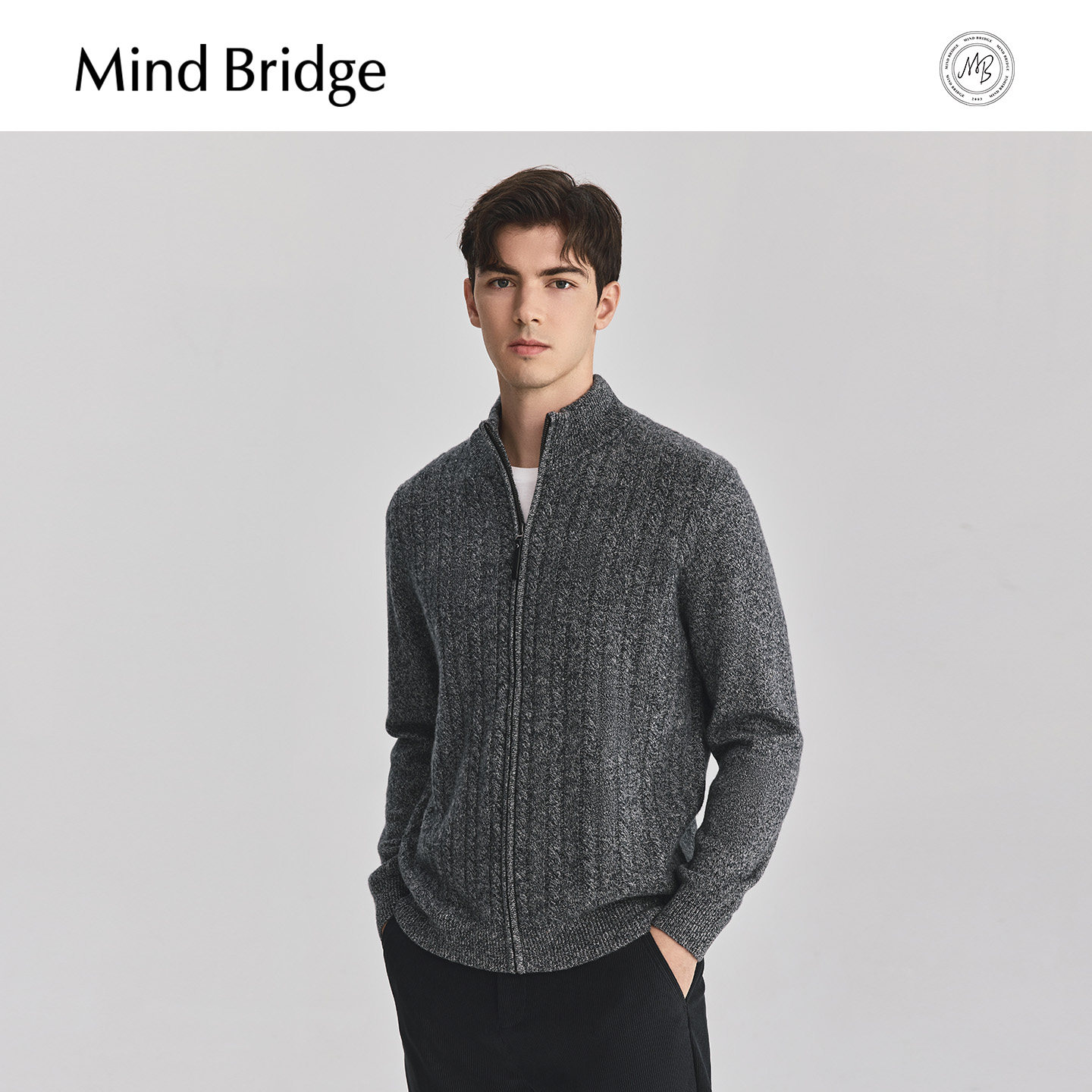 Mind Bridge【绵羊毛】男士复古休闲毛衣开衫2025年冬羊毛衫外套