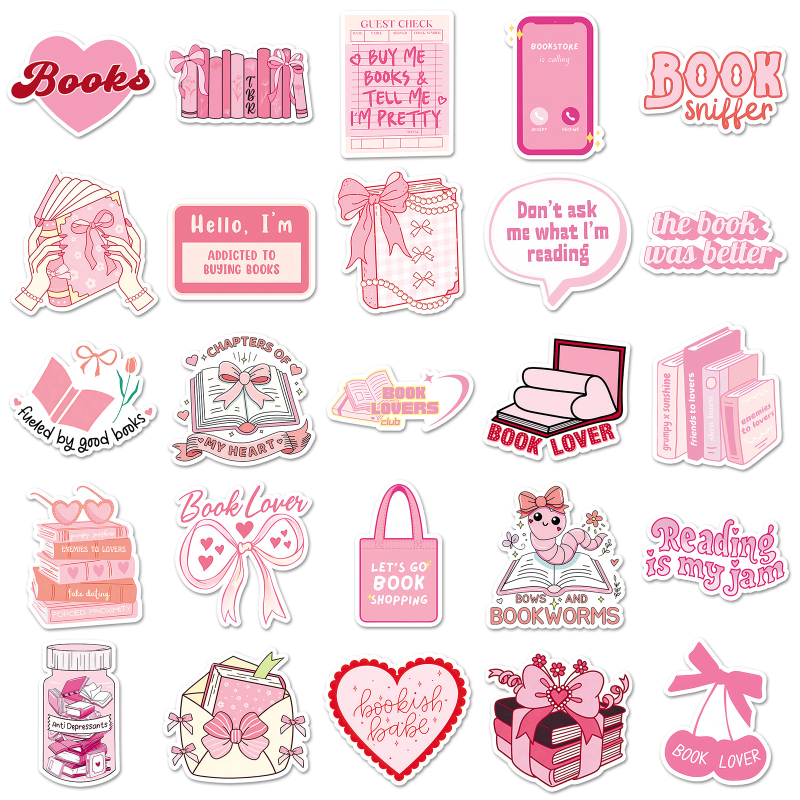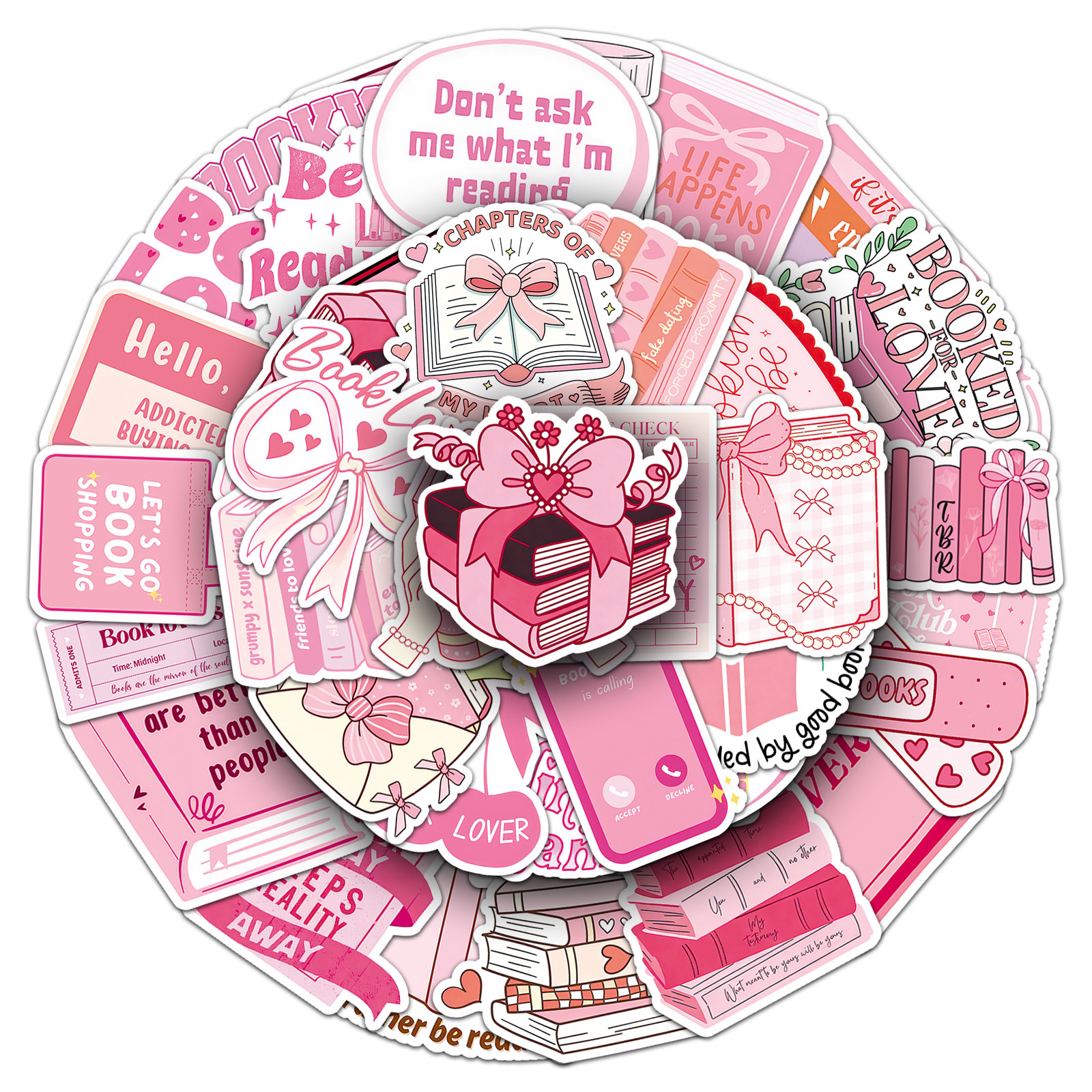100张粉色爱阅读手帐贴纸少女心咕卡diy装饰防水日记本文具相册耳机壳头盔吉他保温杯滑板平板电脑电动车贴纸