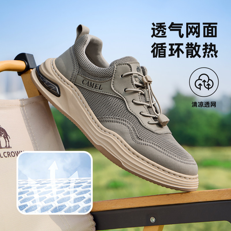 骆驼男鞋2026夏季轻盈透气快穿网鞋城市休闲轻盈软弹气垫休闲鞋
